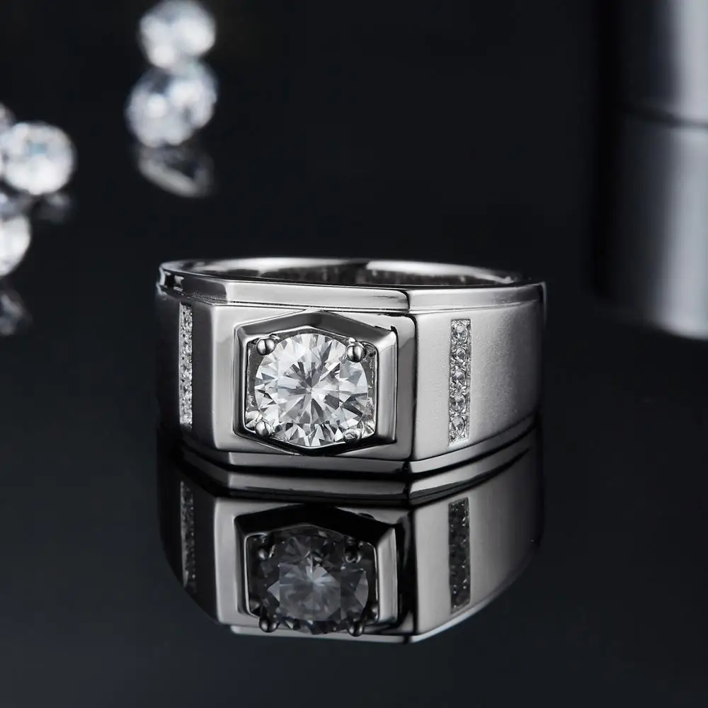 Мужское кольцо с муассанитом, серебро 925 пробы, цвет G 1,0 Ct., 6,...