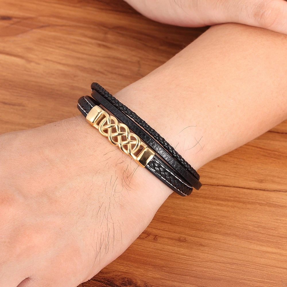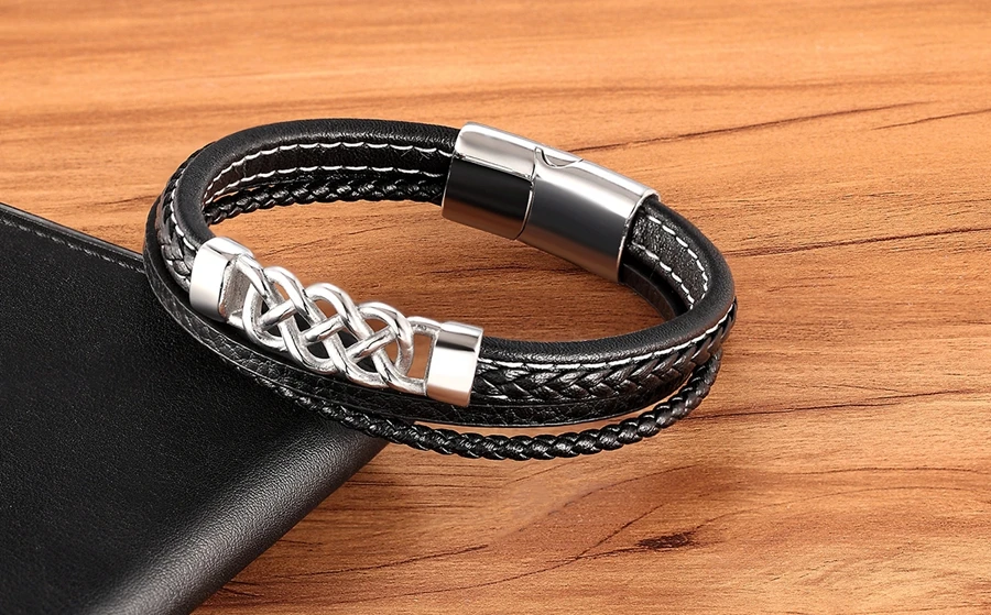 Браслет многослойный мужской, магнитные кожаные браслеты с магнитной застежкой, модное Ювелирное Украшение с плетеным плетением, браслет на руку 2020
