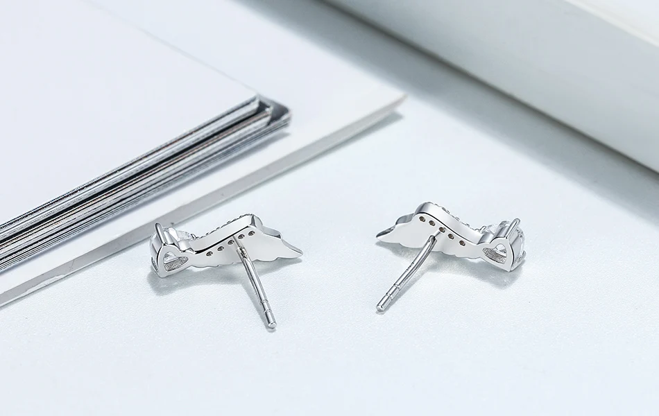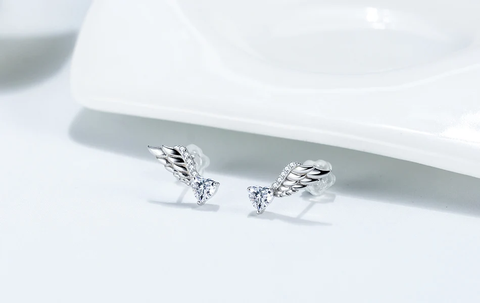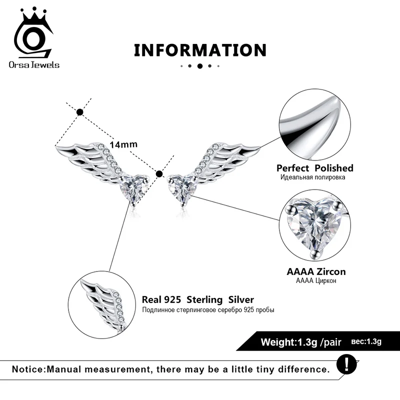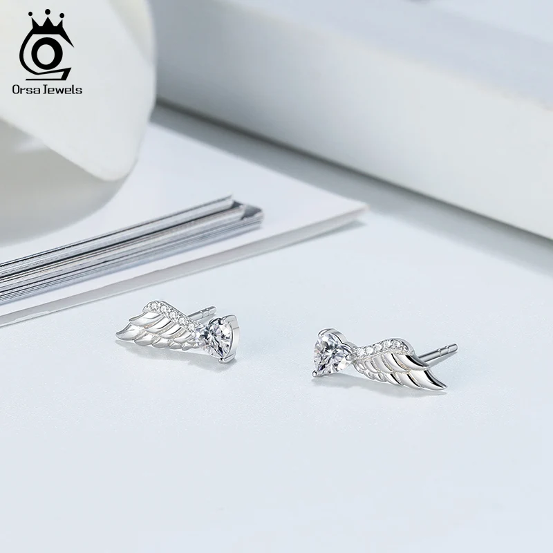 ORSA JEWELS оригинальный дизайн 925 пробы серебряные серьги-гвоздики с крыльямиС цирконием в форме сердцаСерьги-гвоздики из серебра 925 пробыДля женщин2020 НовинкаSE313