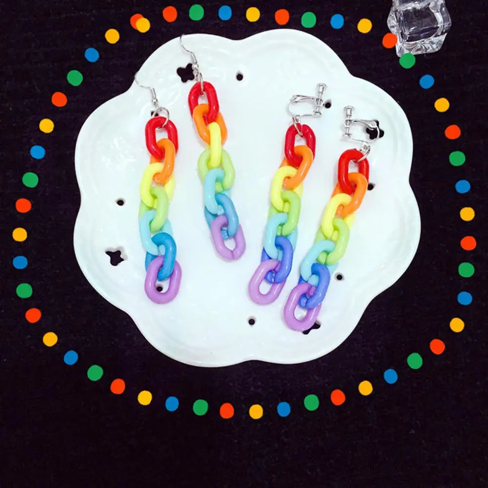 Длинная висячая цепочка из акрила, радужная серьга дюйма, для пары,...