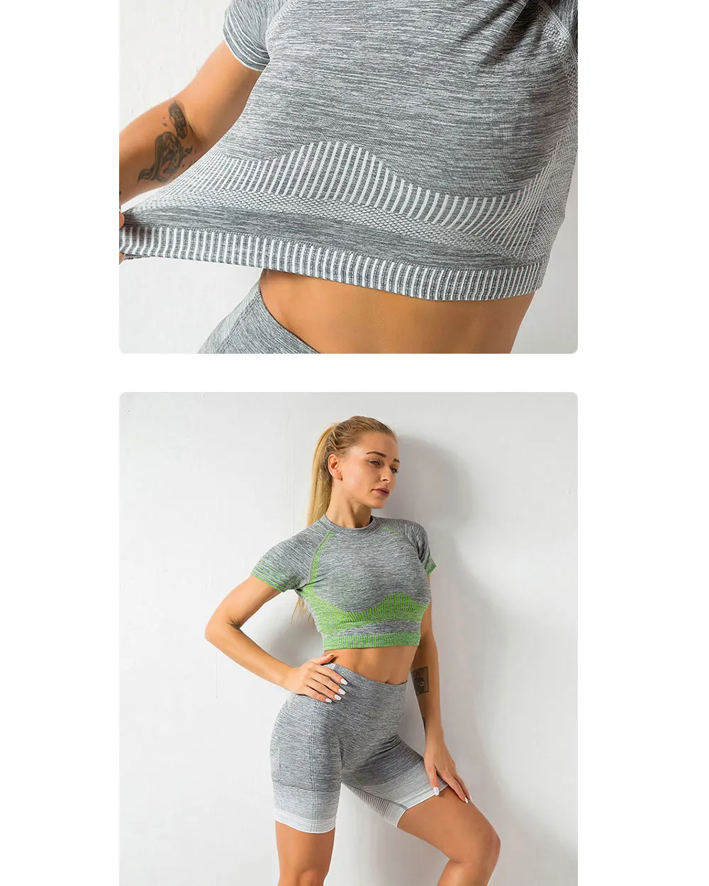 Женская бесшовная полосатая спортивная одежда, ударопрочный спортивный бюстгальтер, футболка для бега, шорты для фитнеса, модные эластичные обтягивающие штаны для йоги, комплект