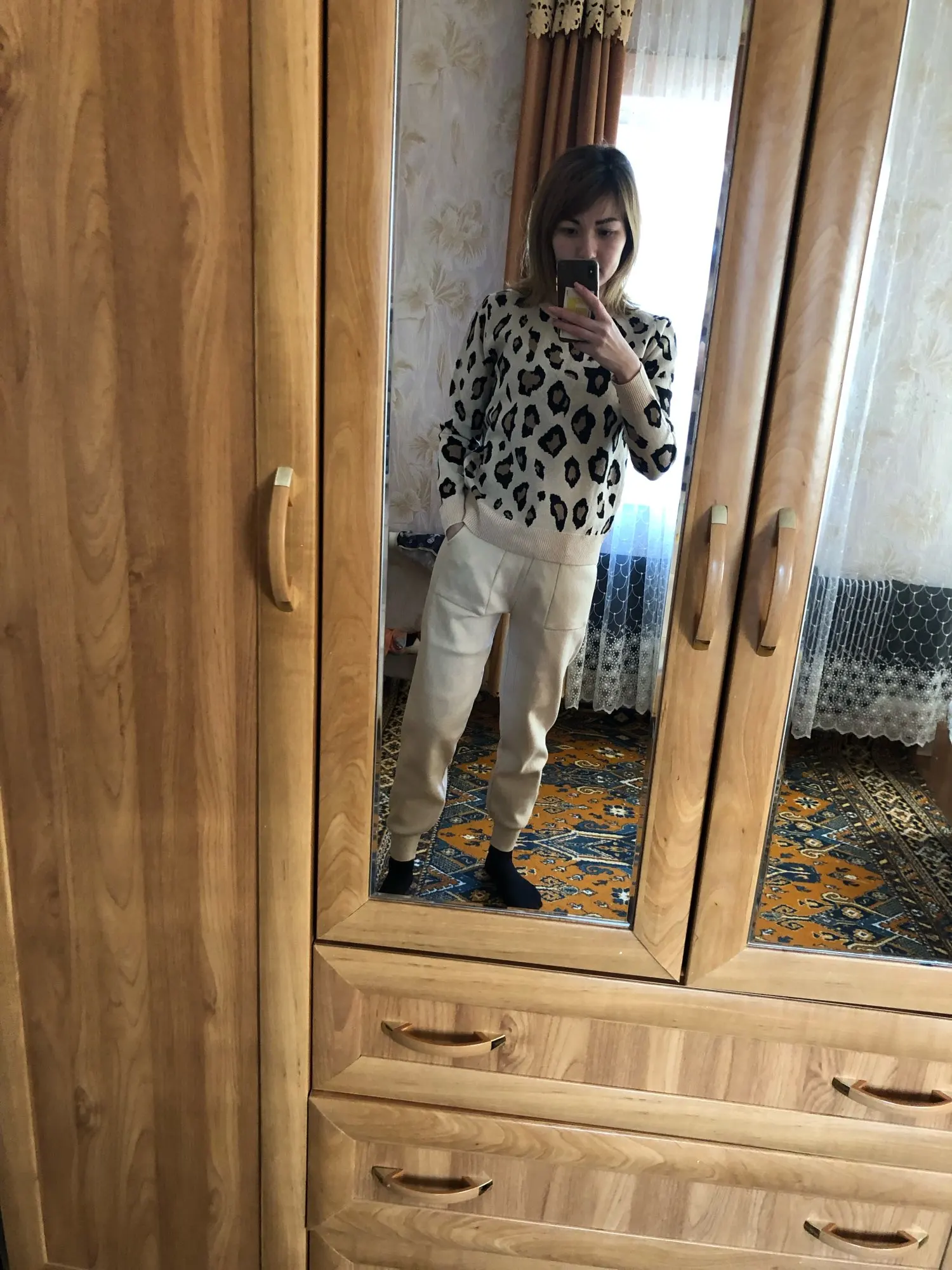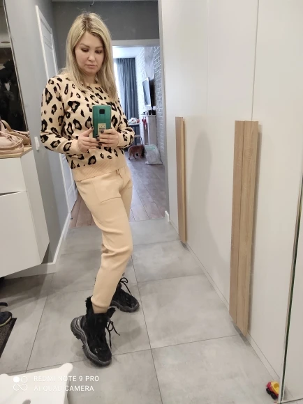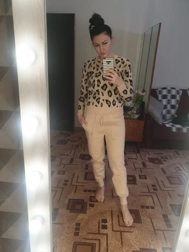 Заказала 19.01, пришло 30.01. Оперативно, я считаю. С продавцом не общалась, подарка не положил. Только на почте посылку положили в красивый пакет АлиЭкспресс. Мой размер 46, параметры 97-78-94, рост 164, боялась заказывать единый размер, потому как после родов ещё животик не совсем ушел, думала, обтянет меня как сардельку. Однако костюм сел хорошо, вязка плотная, швы ровные. Пока мерила, стало жарко, то есть теплый костюм, греть будет)) По длине брюки нормально, как надо. Пояс у брюк ровно до талии, если натянуть сильно, то будет ,, верблюжья лапка,, а если стянуть вниз, то мотня висит, в общем нужно выбрать какое-то среднее положение, ну или в процессе носки подрастянется и нормально сядет. Пока не носила, поэтому про катышки и растянутые коленки сказать не могу.