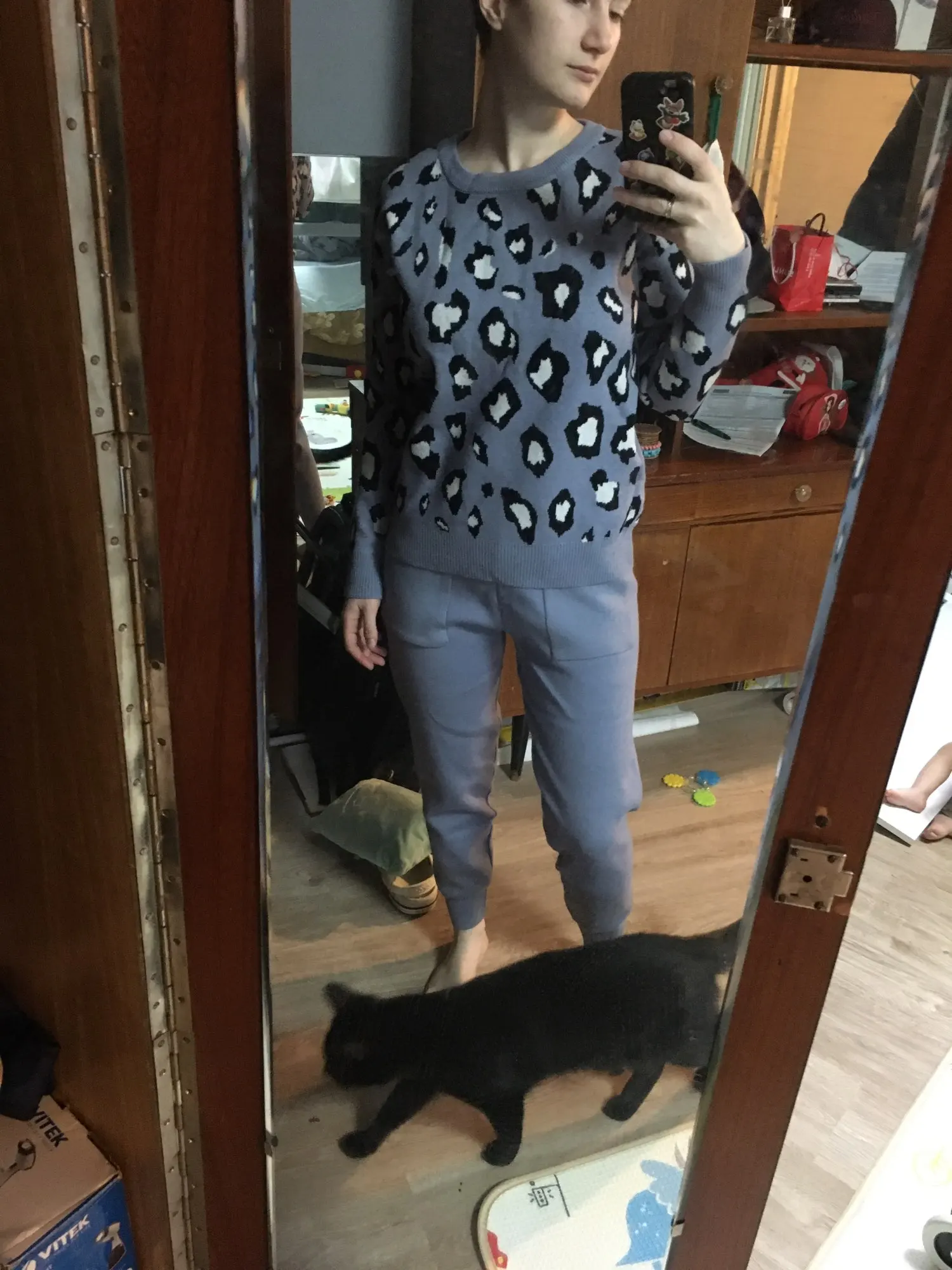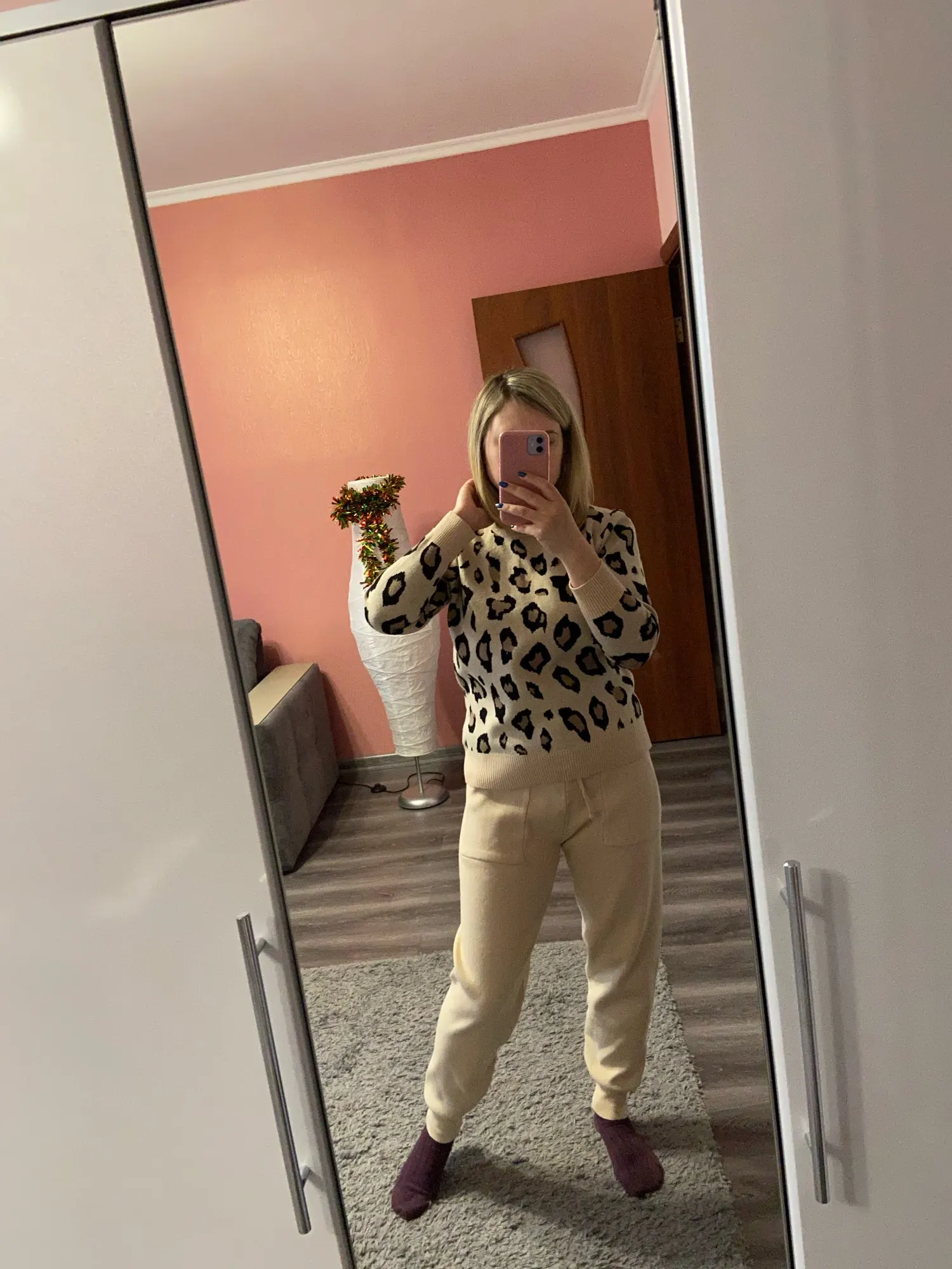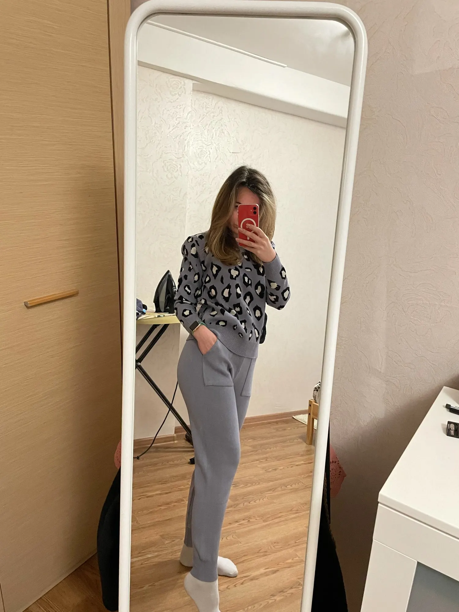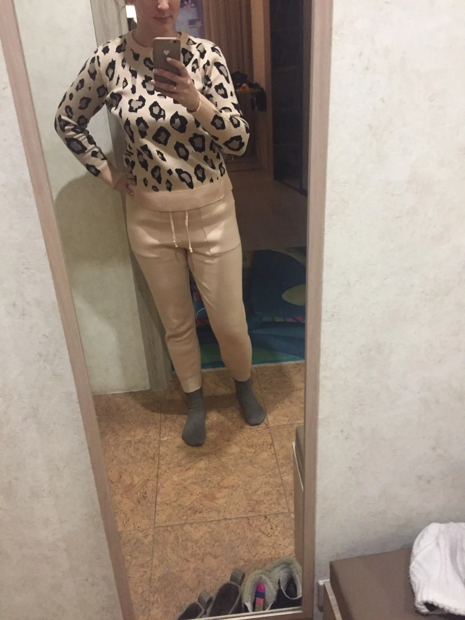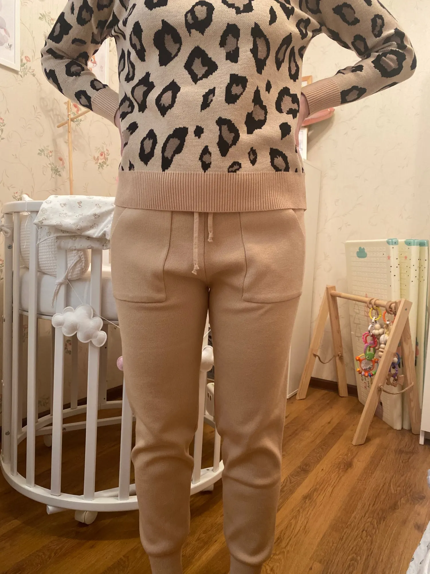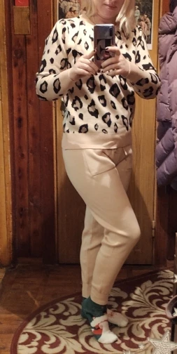 Хороший костюм, хорошее качество, на рост 158 штаны сели хорошо, на беременный живот хорошо тянуться, сейчас талия 80см, свитер чуть большеват, на вырост пойдет)) две стирки пережил, не растянулся пока что. Спасибо продавцу, цена качеству соответствует. Доставка около 10 дней дпд служба.