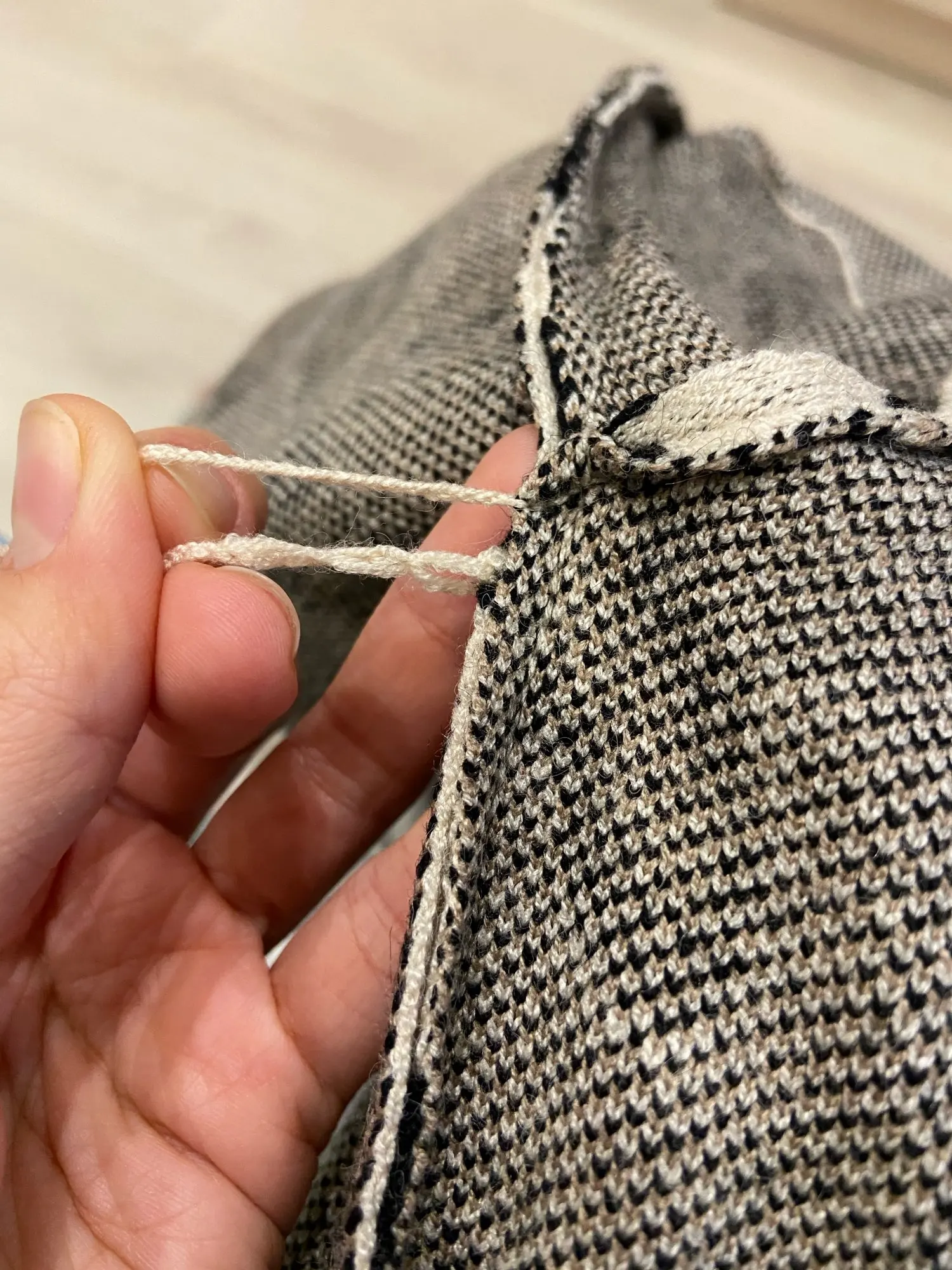 Хороший костюм, плотная и мягкая машинная вязка, как на картинке продавца, запаха нет, качественно прошит. На росс. размер 42-44 и рост 160 см. отлично подошло ( больше уже будут короткими рукава).
