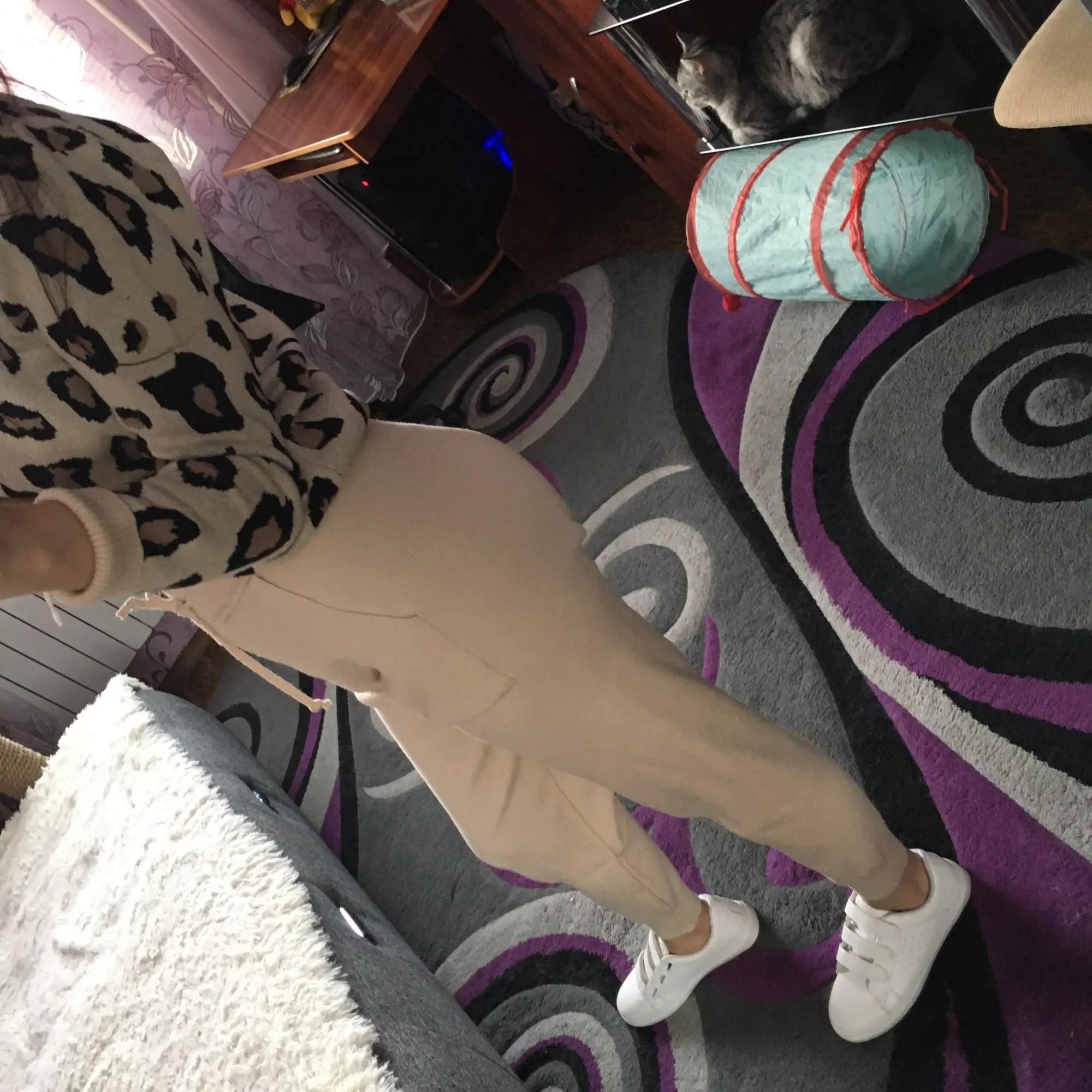 Костюм очень хороший, мягкий, приятный к телу. Синтетика конечно, но надеюсь будет тепло. Высоким девушкам будут коротки штанины и рукава, у меня рост 164 хотелось бы даже чуть длиннее. У штанишек высокая посадка. Все прошито хорошо, брака нет, нитки не висят.