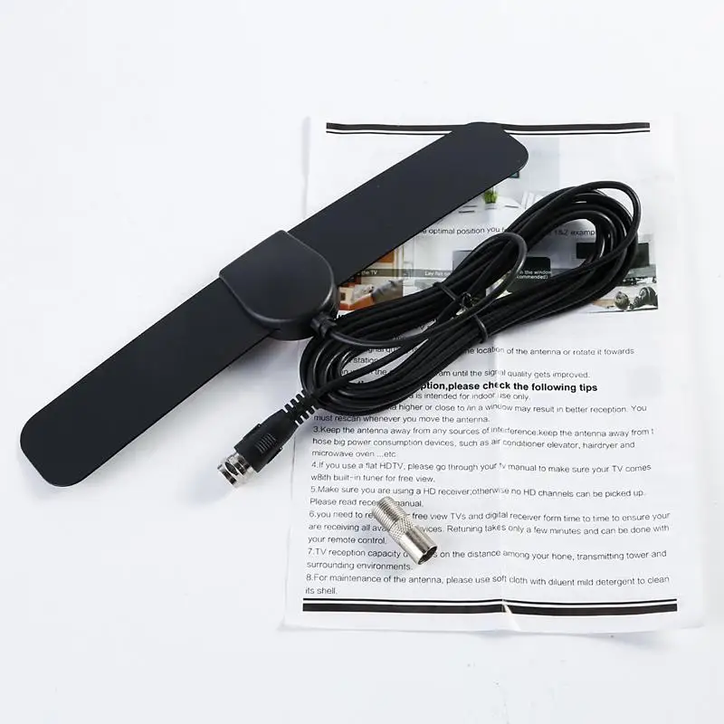 Рабочая частота: VHF (170-240 МГц) / UHF( 470-860 МГц)VSWR: менее equal1.5Импиденция: 75 ΩКоэффициент усиления LNA: 25 дБДиапазон приема: 120 миль (макс.)Кабель: 1.5с-2 в/длина = 4 мРазъемы: УниверсальныеПоляризация: ЛинейныйНапряжение: 5 ВРазъем питания: USBРабочая температура: -45 ~ 85 градусов ЦельсияТемпература хранения: -45 ~ 85 ЦельсияСовместим с 720p, 1080i, 1080p/ ATSCРуководство по установке:Шаг 1: Подключите конец прилагаемого коаксиального кабеля к разъему ANT/IN на задней части телевизора или цифрового конвертера, подключите вилку USV к usb-порту телевизора или цифровой конверсионной коробки.Шаг 2: Держите антенну в руке, рядом с окном, поместите ее горизонтально или вертикально.Шаг 3: в меню настройки телевизора или STB, установите режим тюнера на «антенну» или «воздух» для получения более подробной инструкции, пожалуйста, обратитесь к Руководству по телевизору.Шаг 4: в меню настройки телевизора или STB Установите телевизор на «сканирование» каналов. Иногда это может быть указано как автоматическая программа, автоматическое сканирование, поиск каналов или сканирование каналов. Проконсультируйтесь с руководством по телевизору или детальными инструкциями.Шаг 5: если прием является спорадическим, попробуйте перемещать антенну в другое место и повторно использовать телевизор до тех пор, пока не будет найдено оптимальное состояние.Шаг 6: Закрепите антенну в оптимальном положении.Цвет: черныйМатериал: АБС-пластикРазмер: 21,8*3,5 смПосылка:1 x внутренняя цифровая ТВ-антенна1 х адаптер1 х РуководствоТолько вышеуказанная посылка, другие товары не включены.Примечание: светильник и различные дисплеи могут привести к тому, что цвет товара на картинке немного отличается от реального. Допускается погрешность в измерениях +/- 1-3 см.
