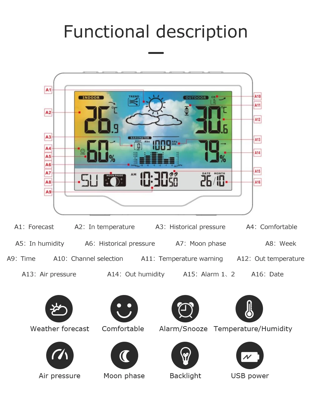 FanJu измеритель метеостанции цифровые часы Будильник беспроводной датчик барометр Крытый Открытый термометр инструменты