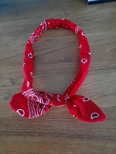 Хорошая повязка. Яркий красный цвет. Подойдёт на большую голову, сидит хорошо, не давит. В бантике проволока. В целом отличная!