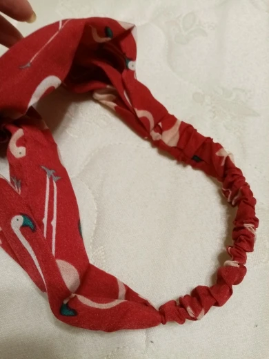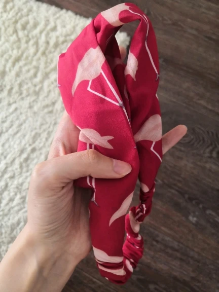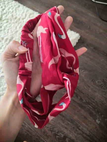 Неплохая повязка на резинке. Ткань тонкая, не такая яркая, как на фото, фламинго прозрачные и выглядят немного "грязными"., тк не белые. Дала бы максимум 20 р за неё. Шло долго, успела открыть спор, но пришла в последний день урегулирования. Продавец был на связи, поэтому 5 звёзд.