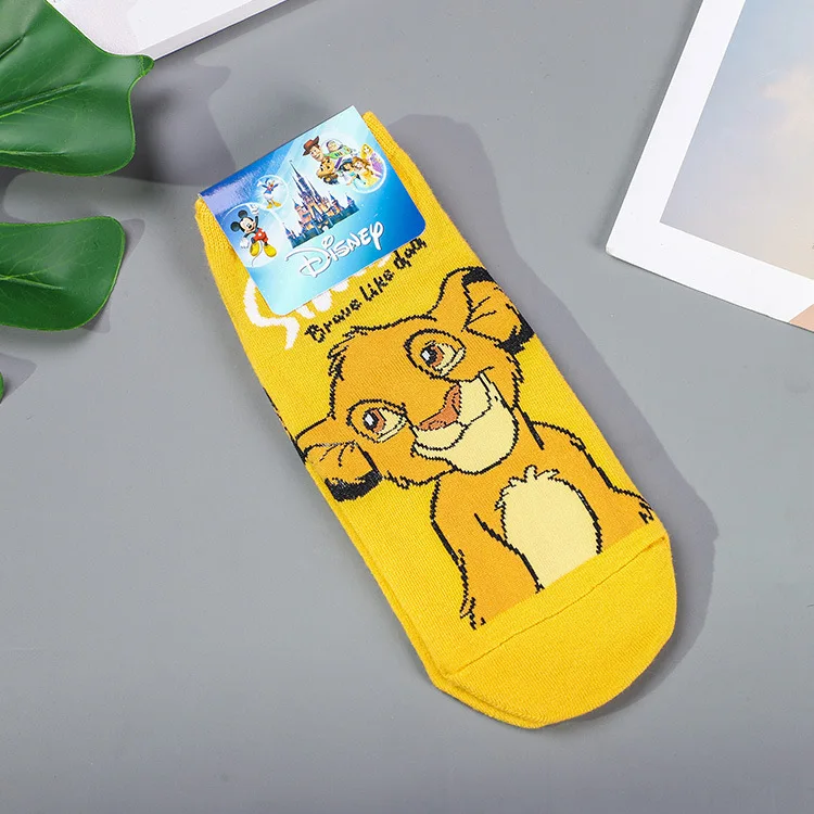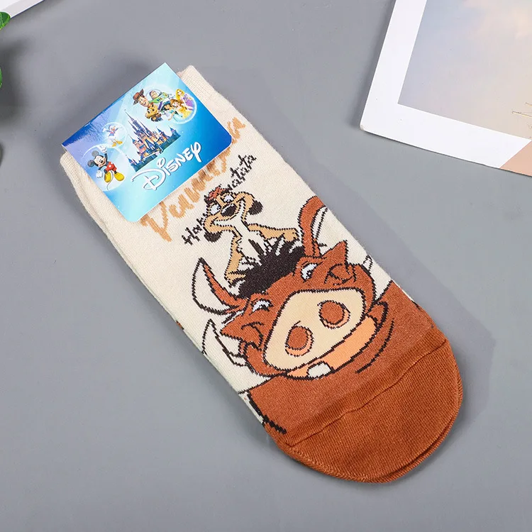 Disney 1 пара носков с принтом "Король Лев: Симбадикий кабанЛампа Аладдина БогомДамбо носки Harajuku с рисунками героев мультфильма забавные носки на весну, толстые короткие носки