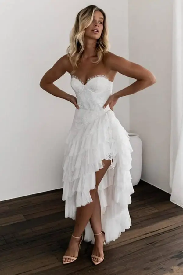 Booma 2020 богемное свадебное платье с высоким низом es Милая Кружевная аппликация Vestidos De Novia линия многоярусные юбки Бохо свадебное платье