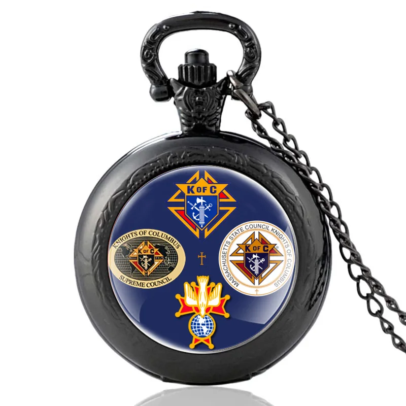 Черные классические кварцевые карманные часы с кабошоном из стекла ...