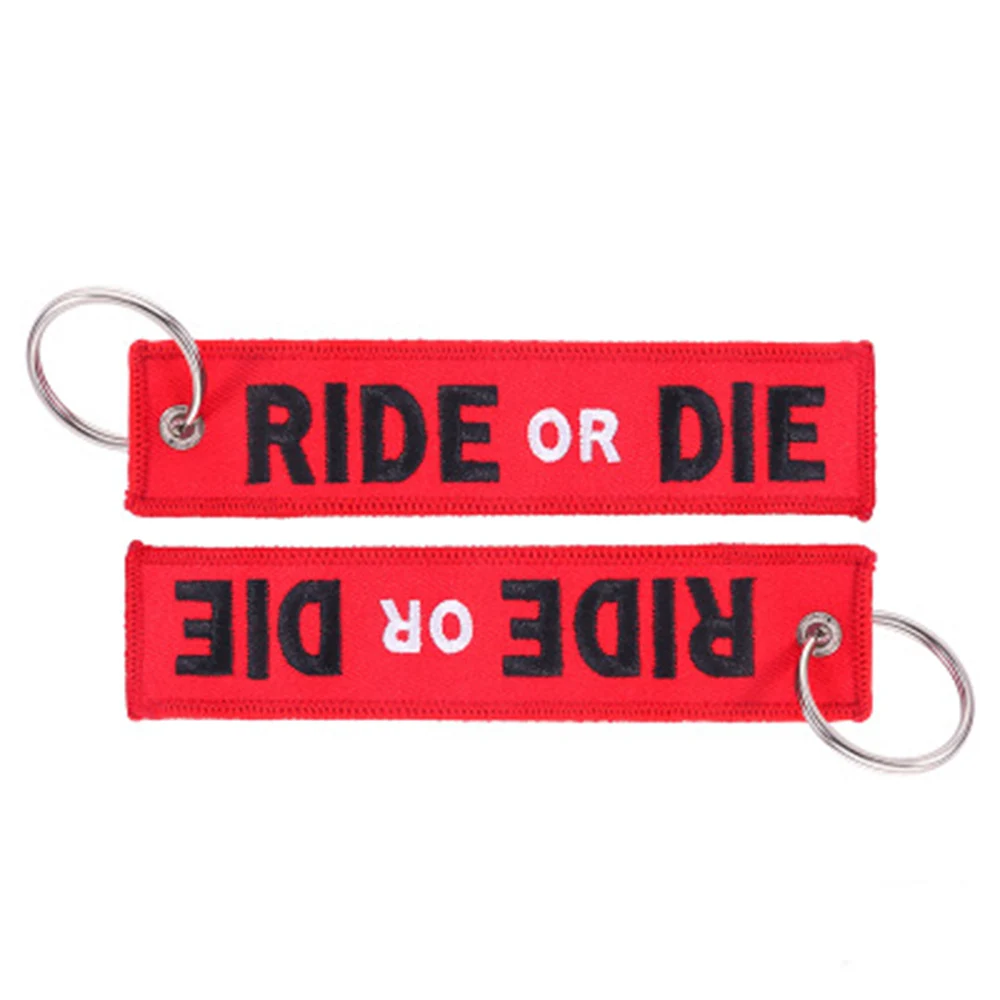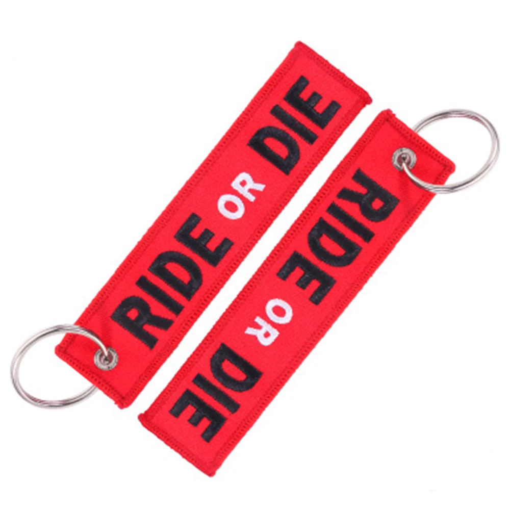 Брелок для ключей с вышивкой, стильный мотоциклетный брелок с красным дном и черной вышивкой, новогодние подарки, подвеска для любителей рюкзака