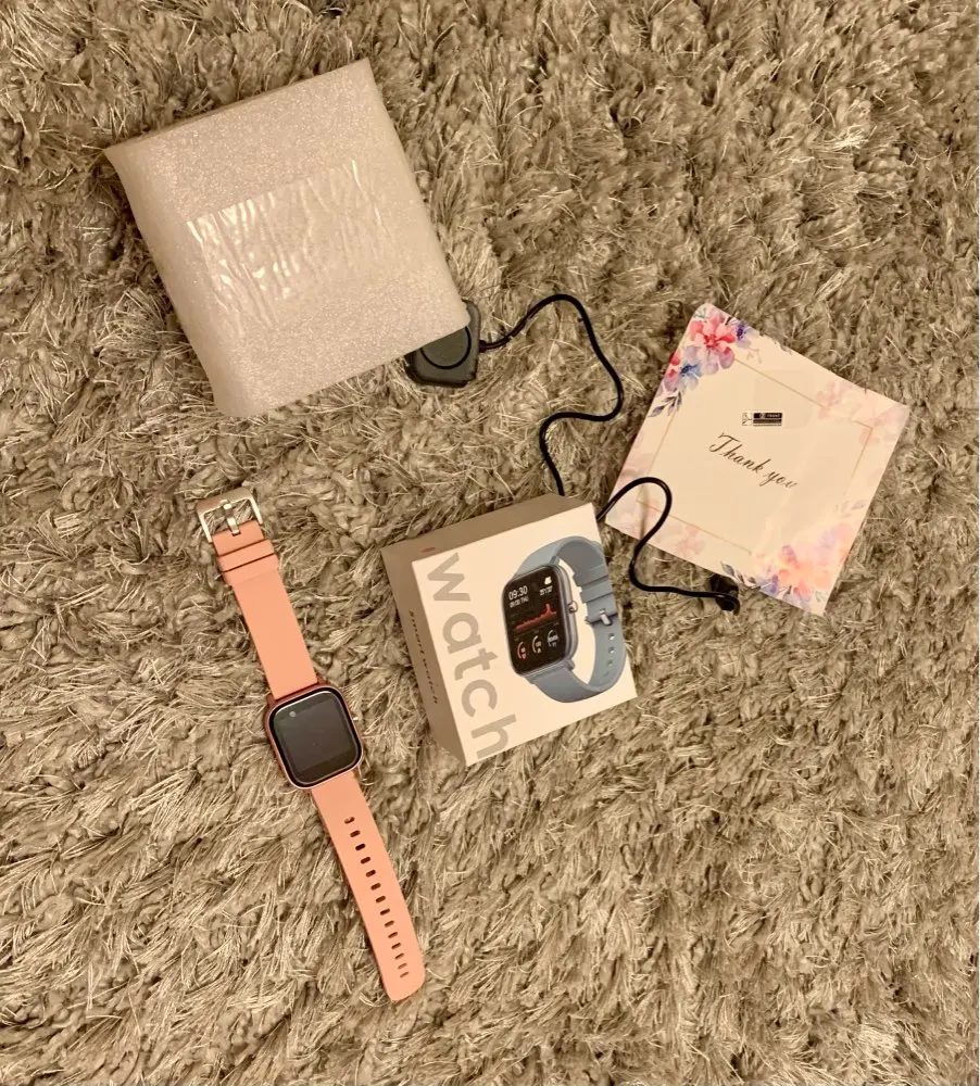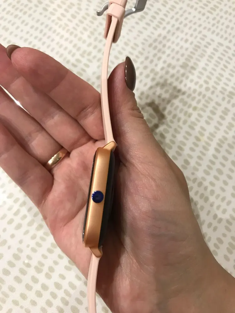 Часы великолепные. Посылка шла неделю. Отслеживалась, курьер привёз домой. я думаю что шаги измеряет с небольшой погрешностью, отображаются сообщения с телефона, отображается звонок, но трубку брать нельзя, отслеживается сон, погода, можно с них переключить музыку, сделать фото через телефон. есть режим спорт. можно поменять циферблат, через приложение в телефоне, поставить свое фото. водостойкие. мыла руки, посуду, полы, ничего не случилось. но купаться в них нельзя. можно прочитать про их степень влагостойкости в интернете по дизайну супер, брала розовые. не такие огромные как эппл. однозначно 5⭐