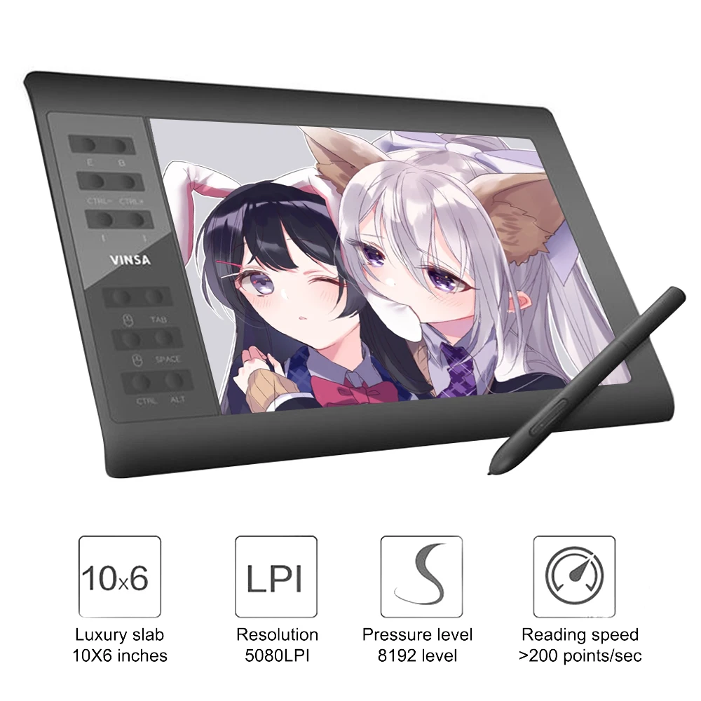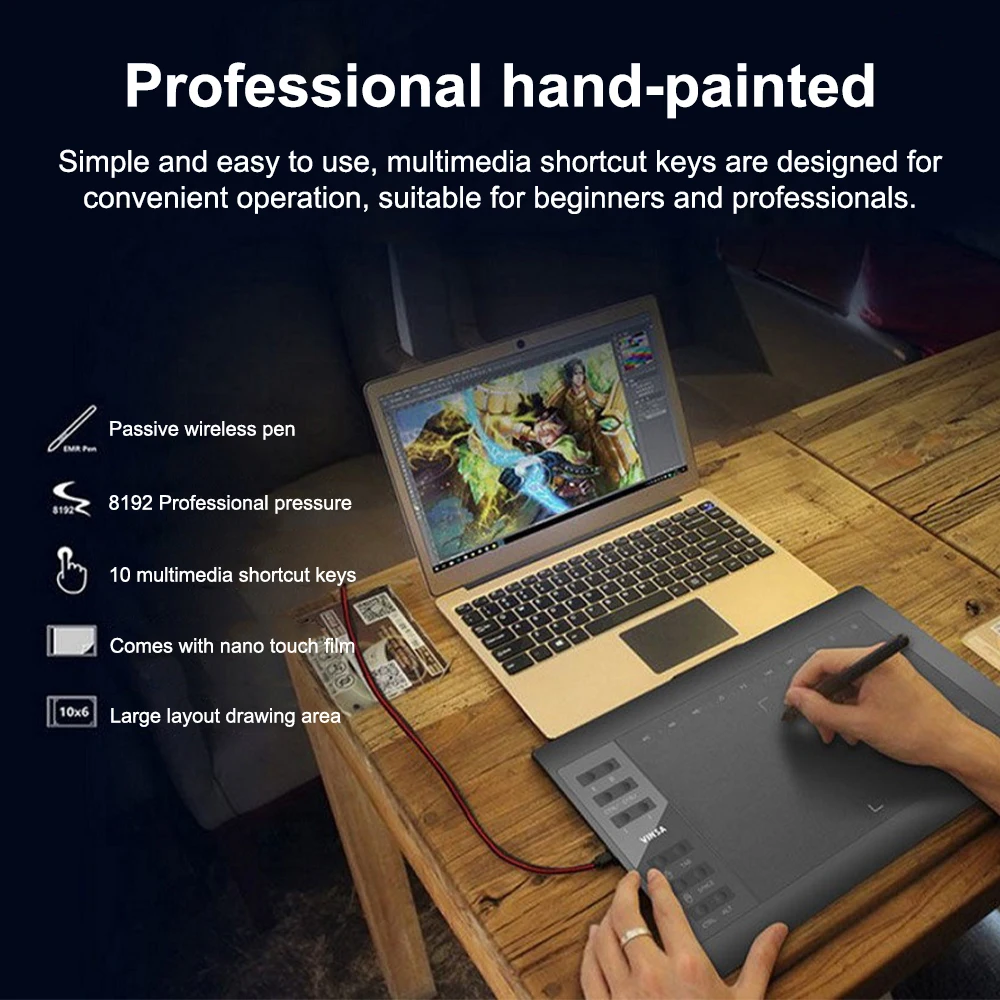 Планшет графический, 10x6 дюймов, 8192 уровня нажатия