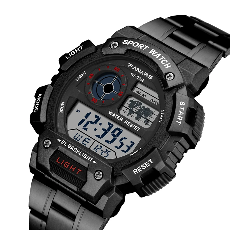 Часы PANARS мужские электронные из нержавеющей стали, роскошные дел...