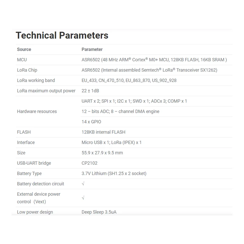 MCU:ASR6502 (48 МГц ARM®Cortex®M0 + MCU, 128 Кб FLASH, 16 КБ SRAM)