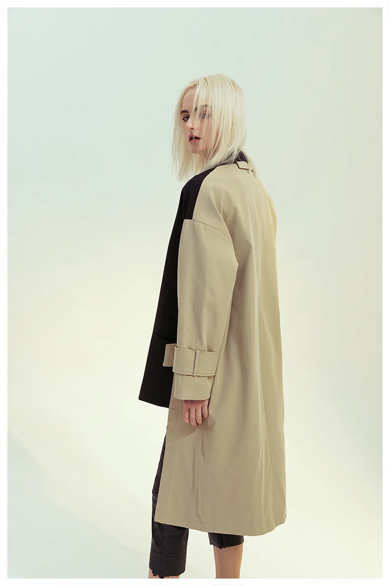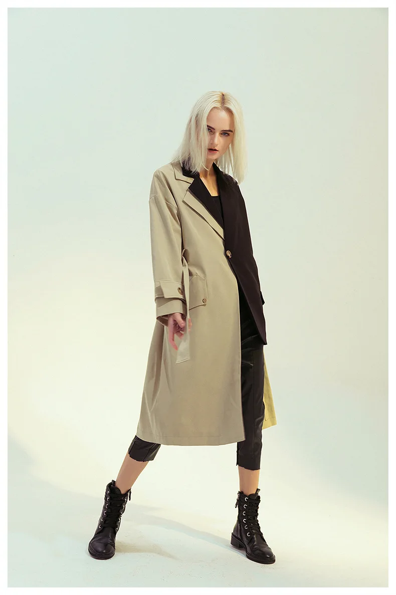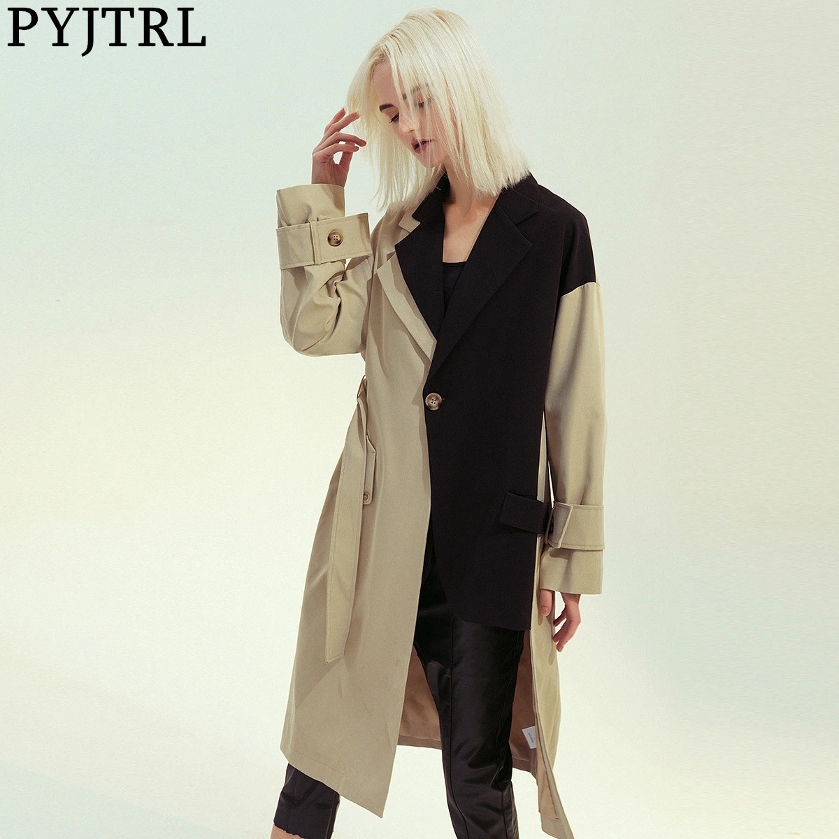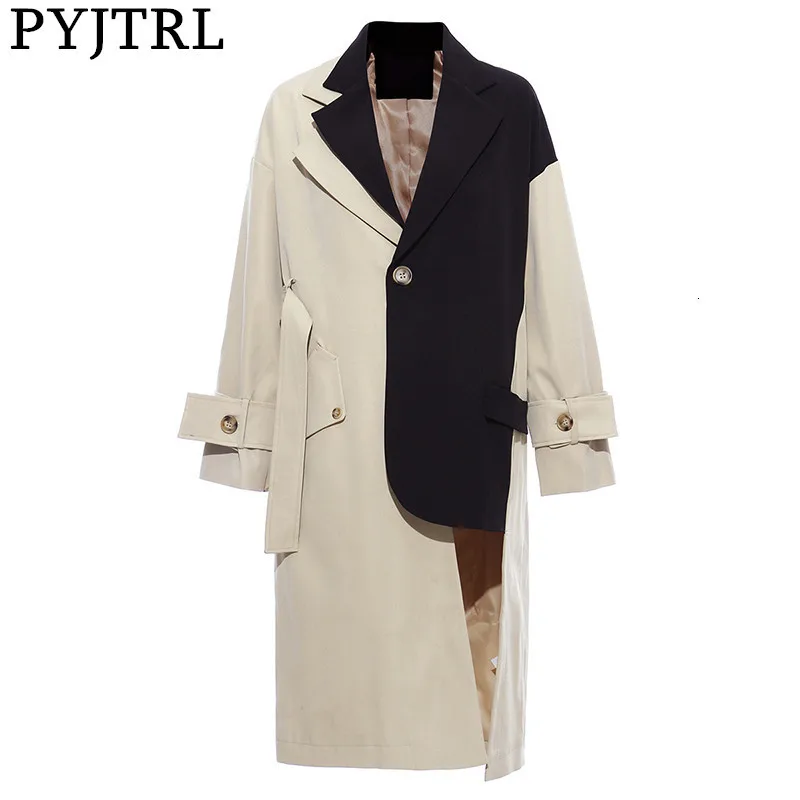 Женский Длинный плащ PYJTRL, асимметричная ветровка в британском стиле, цвета хаки, черного цвета