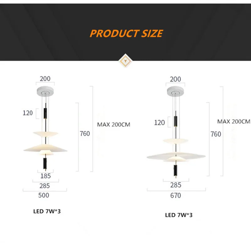 Информация о продукте:Мощность: 5 ВтНапряжение: 111 в ~ 240 ВТип источника: светодиодный светильникРемесло: другоеПлощадь облучения: 10 ㎡-15 ㎡Гарантийный срок: 2 годаПрименимое пространство: гостиная столовая кабинет спальня другое/ДругоеЦвет корпуса лампы: черныйЦвет абажура: матовыйМатериал: металл, акрил, 7 Вт светодиодный (в комплекте)Светильник источник света: теплый светильник/3 цвета СменныеДоступны различные размеры, как показано ниже:2 слоя-A D500 + d500мм, высота 2000 мм, 7 Вт светодиодный x 3 шт.2 слоя-B D670 + d185мм, высота 2000 мм, 7 Вт светодиодный x 3 шт.3 слоя-A D285 + D500 + d185мм, высота 2000 мм, 7 Вт светодиодный x 3 шт.3 слоя-B D285 + D670 + d285мм, высота 2000 мм, 7 Вт светодиодный x 3 шт.4 слоя-A D285 + D670 + D285 + d185мм, высота 2000 мм, светодиодный 7 Вт x 3 шт.4 слоя-B D285 + D500 + D670 + d185мм, высота 2000 мм, светодиодный 7 Вт x 3 шт.* Высота подвесного провода регулируется.* "3 цвета Сменные" включает в себя 3 светильник с цветовыми вариантами (Теплый светильник, белый светильник, естественный светильник), изменен на настенный кнопочный переключатель.
