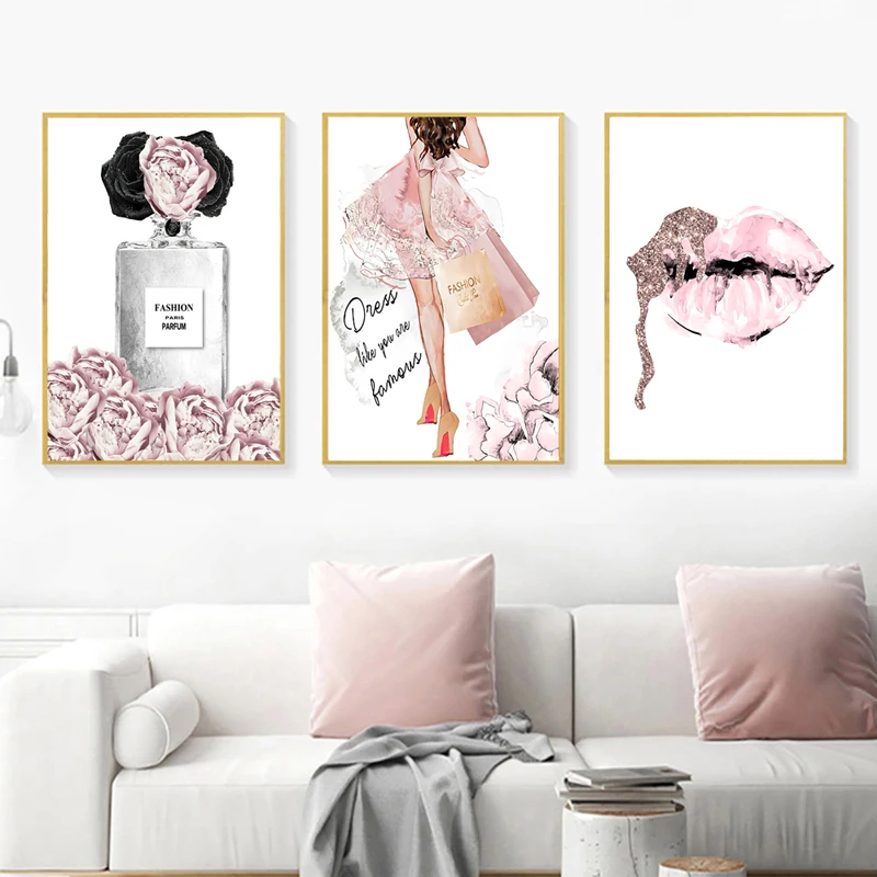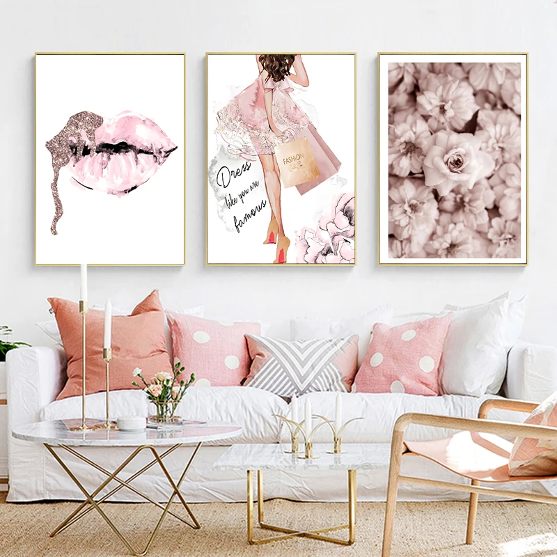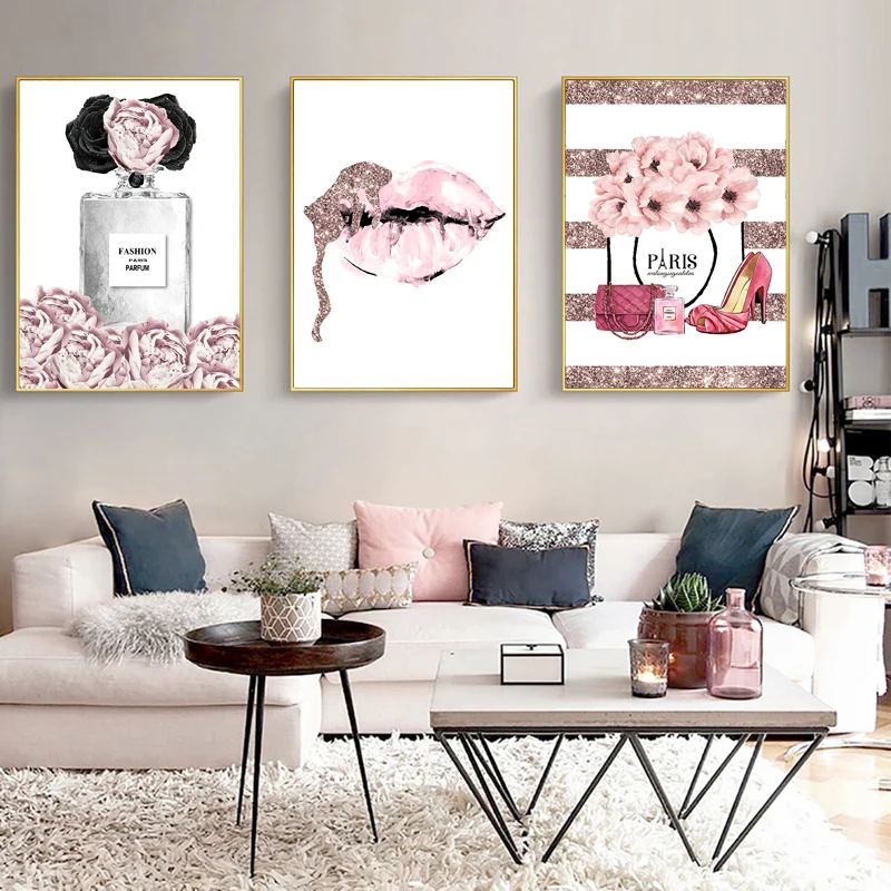 Модный розовый декоративный постер для комнаты для девушек, искусство печати на высоких каблуках, картина на стену для магазина красоты