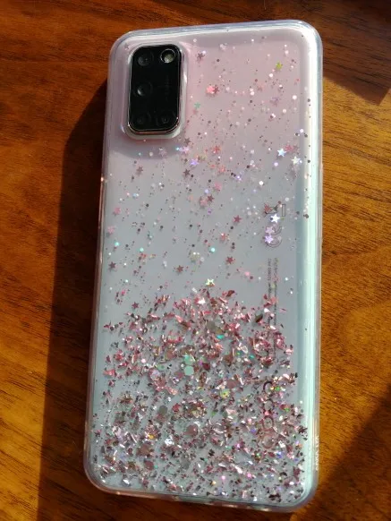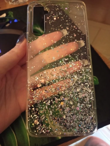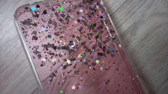 чехол пришёл через месяц. на телефоне выглядит здорово. хотя я ожидала, что блестки там будут двигаться, оказалось - нет.