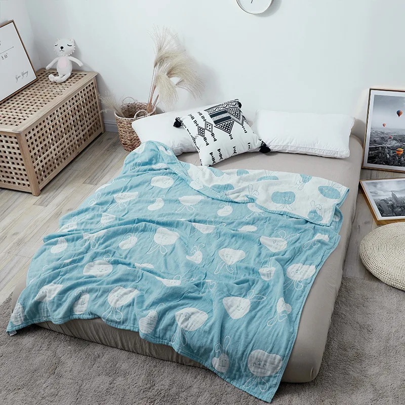 Летнее хлопковое четырехслойное газовое одеяло на кровать, покрывал...