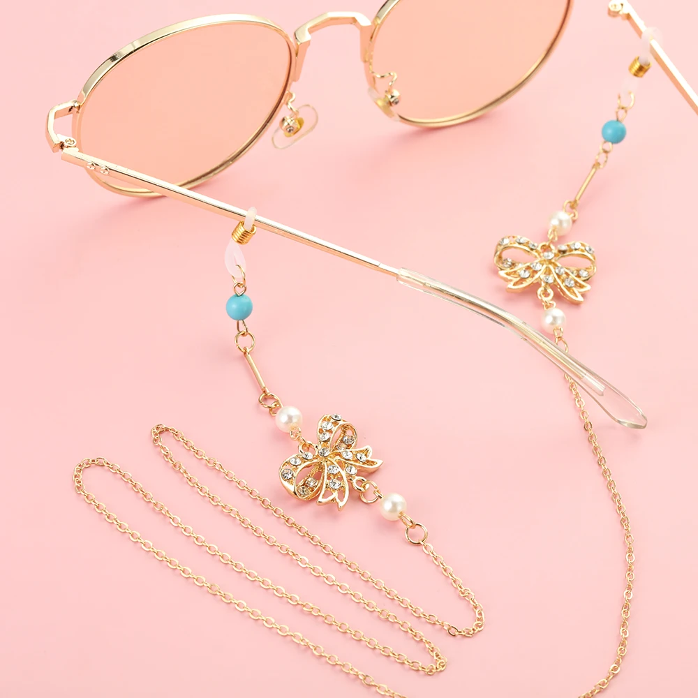 Модная Регулируемая цепочка для солнцезащитных очков с жемчугом, цепочка для очков с бабочкой и бриллиантами, ремешок для очков для чтения, ожерелье для очков, 2020