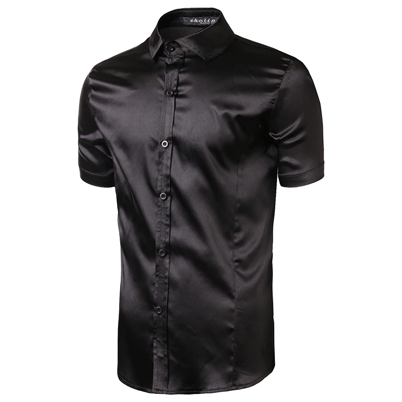 Рубашка мужская шелковая атласная, фиолетовый цвет, короткий рукав, приталенная, Повседневная гладкая, для вечеринок, мероприятий, 2XL, лето 2020