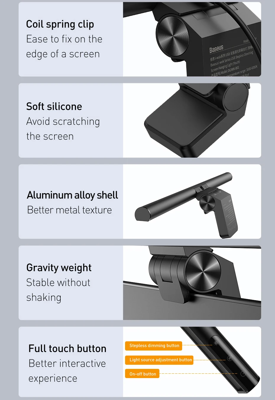 Компьютерный светильник Baseus, подвесной светильник для ноутбука, с USB-разъемом
