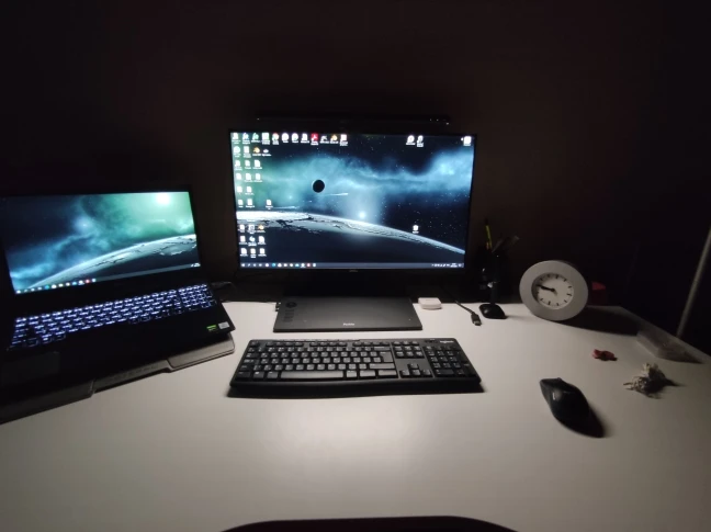 Лампа оправдывает себя на все 100%. Свет яркий, в глаза не бьет, даже с учетом того что стоит она на 32 дюймовом мониторе который расположен достаточно высоко. Рабочее пространство освещает отлично, при этом не мешая остальным в комнате. Это просто Musthave для любого рабочего места. На фото разница в 3 режимах почти не заметна, но она есть и очень ощутимая