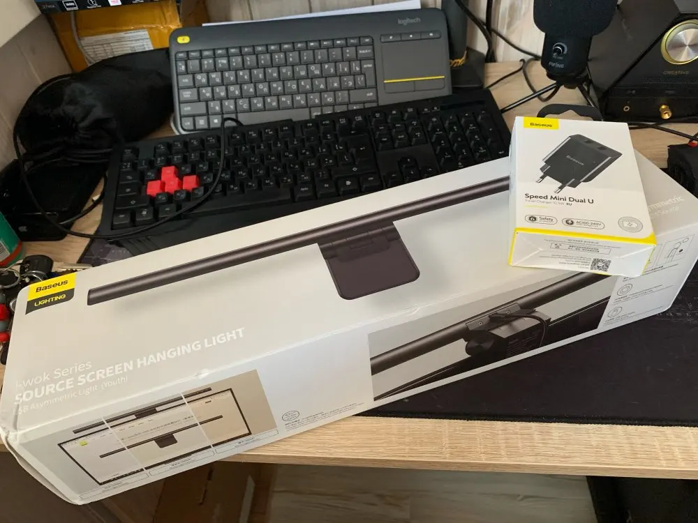 Лампа шла почти месяц в сборной посылке, зависла на таможне. Упаковано отлично - мягкий пакет, заклееный фирменным скотчем, коробка и пенопласт. Очень высокое качество изготовления самой лампы - никаких задиров, царапин, люфта и прочего. Металлический корпус лампы, надёжный противовес на пружине, мягкие подушечки на месте крепления на монитор. У комплекте у меня был только кабель для подключения к адаптеру/usb порту. Удобные сенсорные индикаторы-вкл/выкл, смена режима свечения и диммер для тонкой настройки яркости. Незначительно пищат дроссели на минимальной яркости. Единственное с чем я прокололся - это толщина монитора, встало несколько криво из-за выступающей задней панели монитора. Не критично, но факт. Владельцы безрамочных мониторов учитывайте то, что крепление лампы будет упираться в матрицу экрана. По итогу: шикарная лампа, нисколько не жалею о приобретении. Закажу ещё одну на работу)