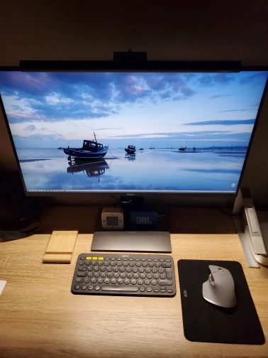 Лампа хорошая, сделана очень качественно, выглядит просто шикарно. Упакована в толстый пенопласт, доехала целая и невредимая. Выход на питание usb-c. Крепление хоть и рассчитано на плоскую заднюю часть монитора, а не на полукруглую, как у меня, но держится неплохо. Кстати, в описании об этом не говорится, хотя даже на упаковке есть об этом упоминание (см. фото). Плавная регулировка яркости, удобное управление.