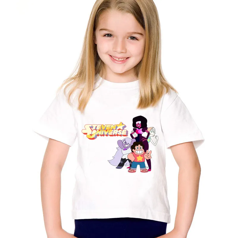 Детские Забавные футболки с мультяшным принтом Вселенная Стивена, детские летние футболки с коротким рукавом, повседневные топы для мальчиков и девочек, детская одежда