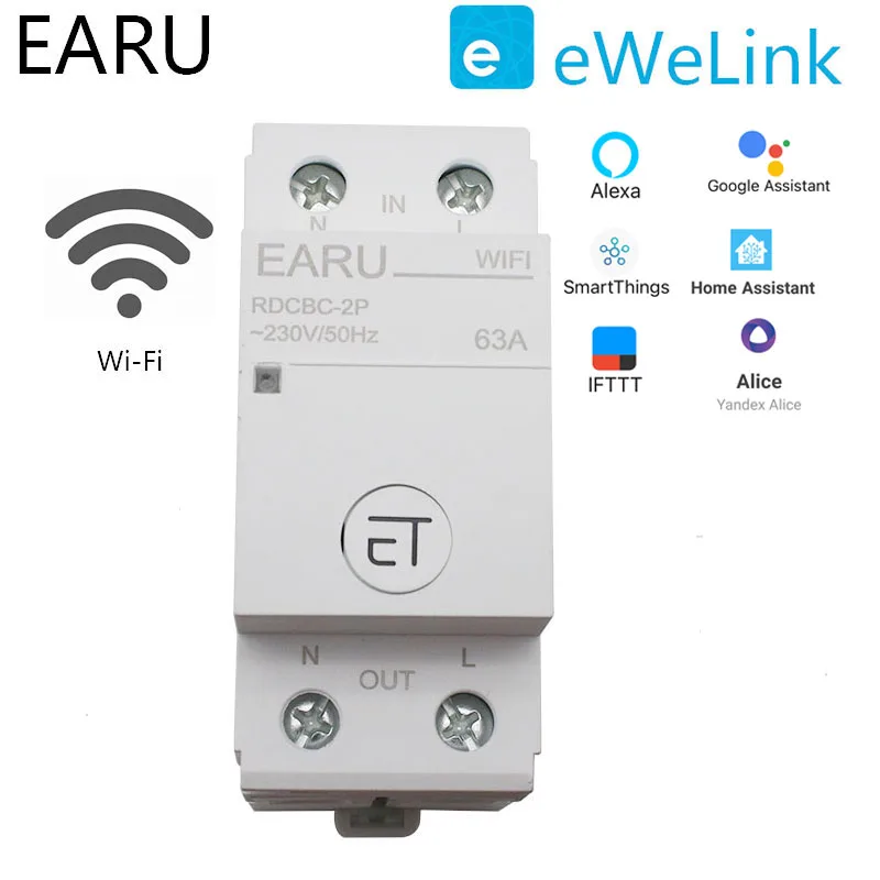 Автоматический выключатель eWeLink, 1P + N Din-рейка, Wi-Fi, умный ...