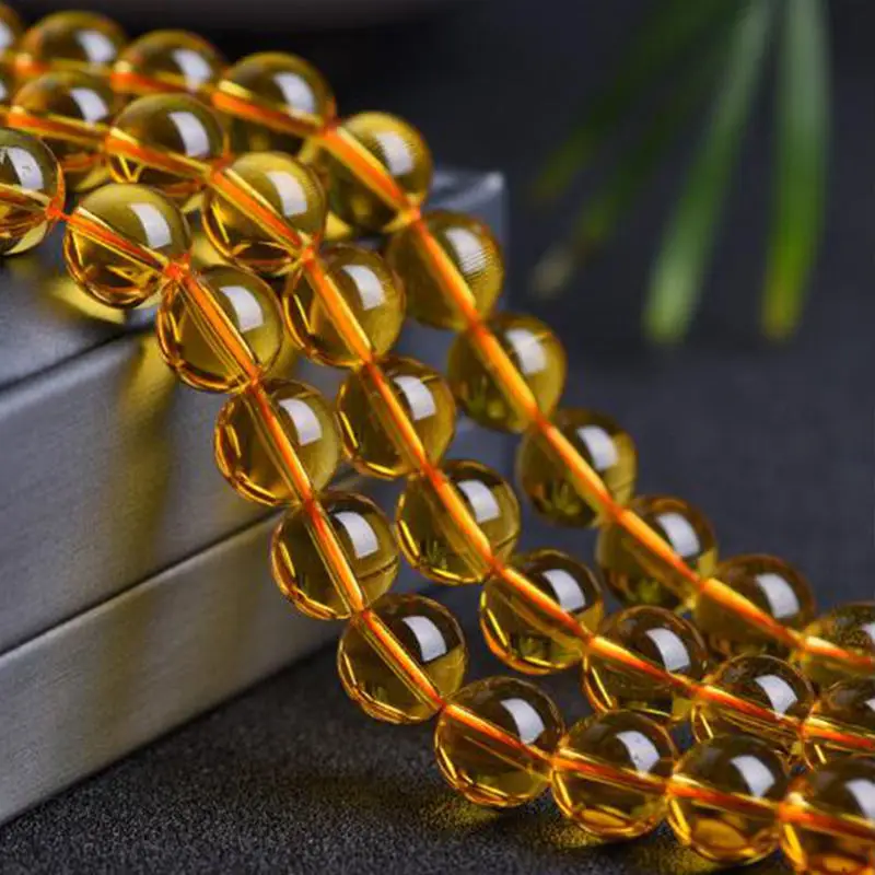 Высокое качество желтый натуральный Кристальный камень 468101214 мм гладкое круглое ожерелье браслет ювелирные изделия свободные бусы 38 см wk131