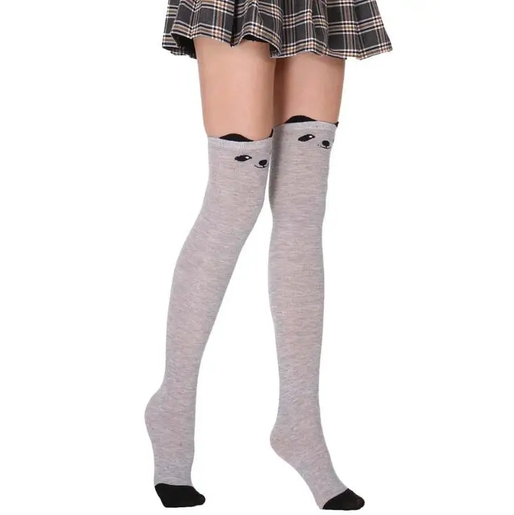 Модные пикантные Мультяшные длинные носки, носки до колена с котом, женские носки, хлопковые носки с кошачьими лапками, Длинные чулки с милым котом для девочек