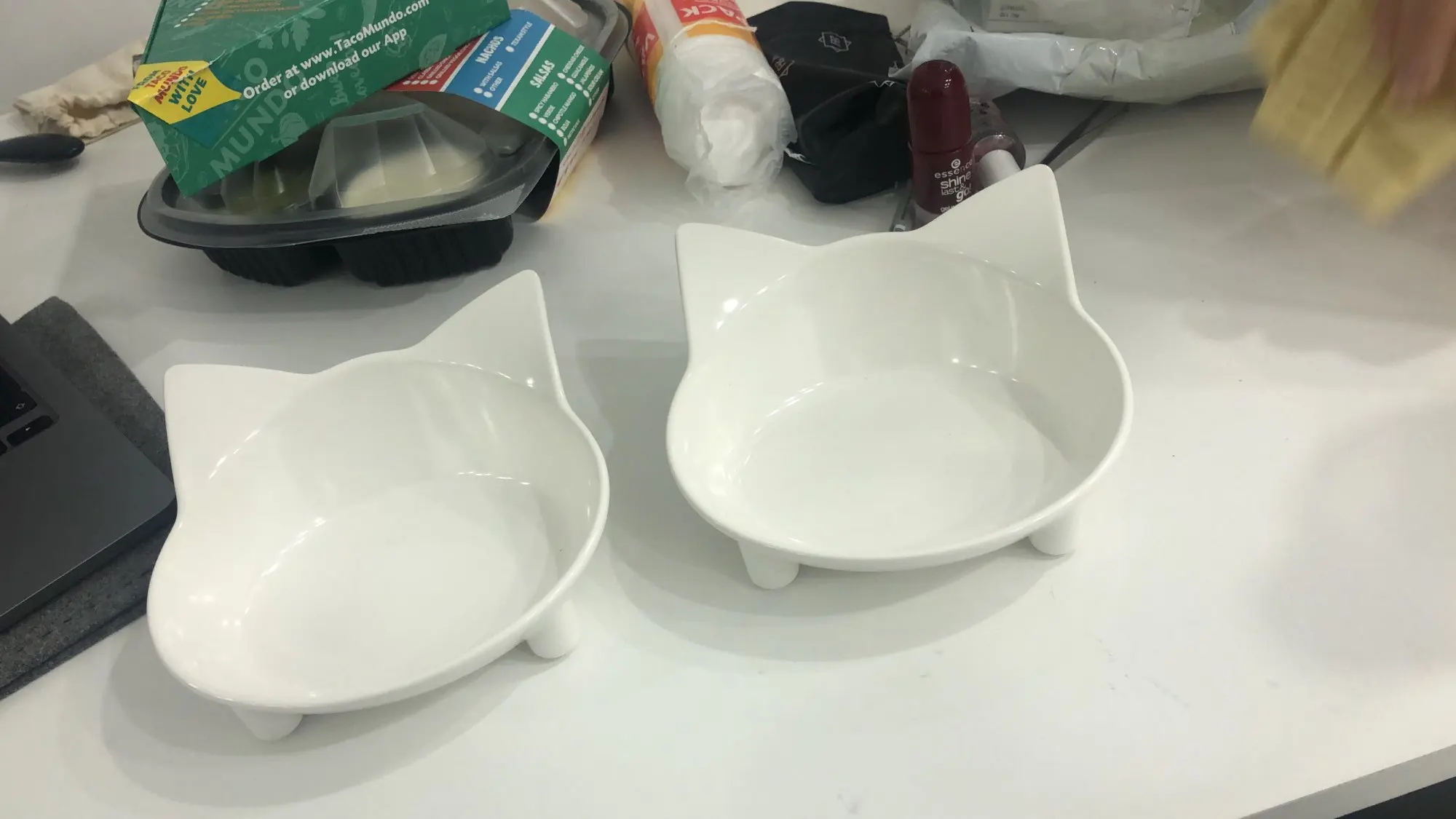 очень красивые пластиковые миски для котиков. выглядят очень надежно, не разобьются. спасибо.очень довольна.