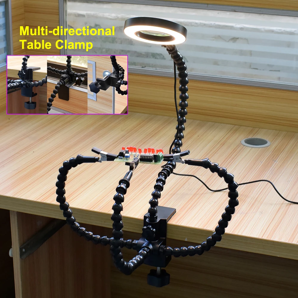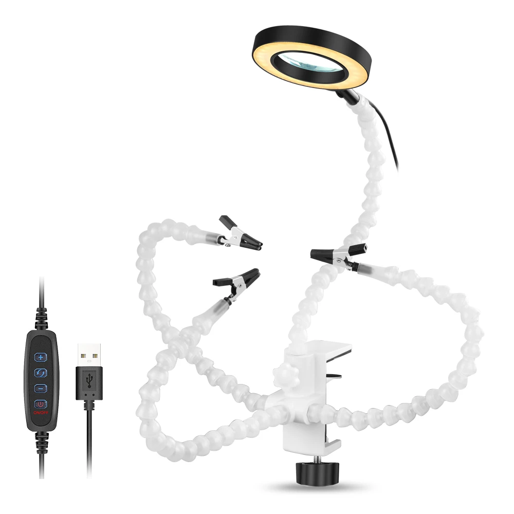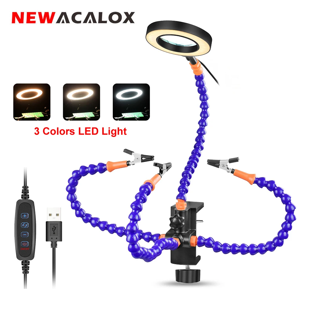 Лупа NEWACALOX Светодиодная настольная с зажимом для пайки, 3-кратная лупа для поделок, ювелирных изделий, переделки и пайки
