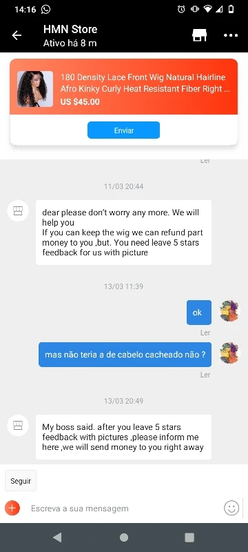 Страна: BR Color: lace front wig Stretched Length: 26inches Доставка: Standard Shipping 17.03.2022