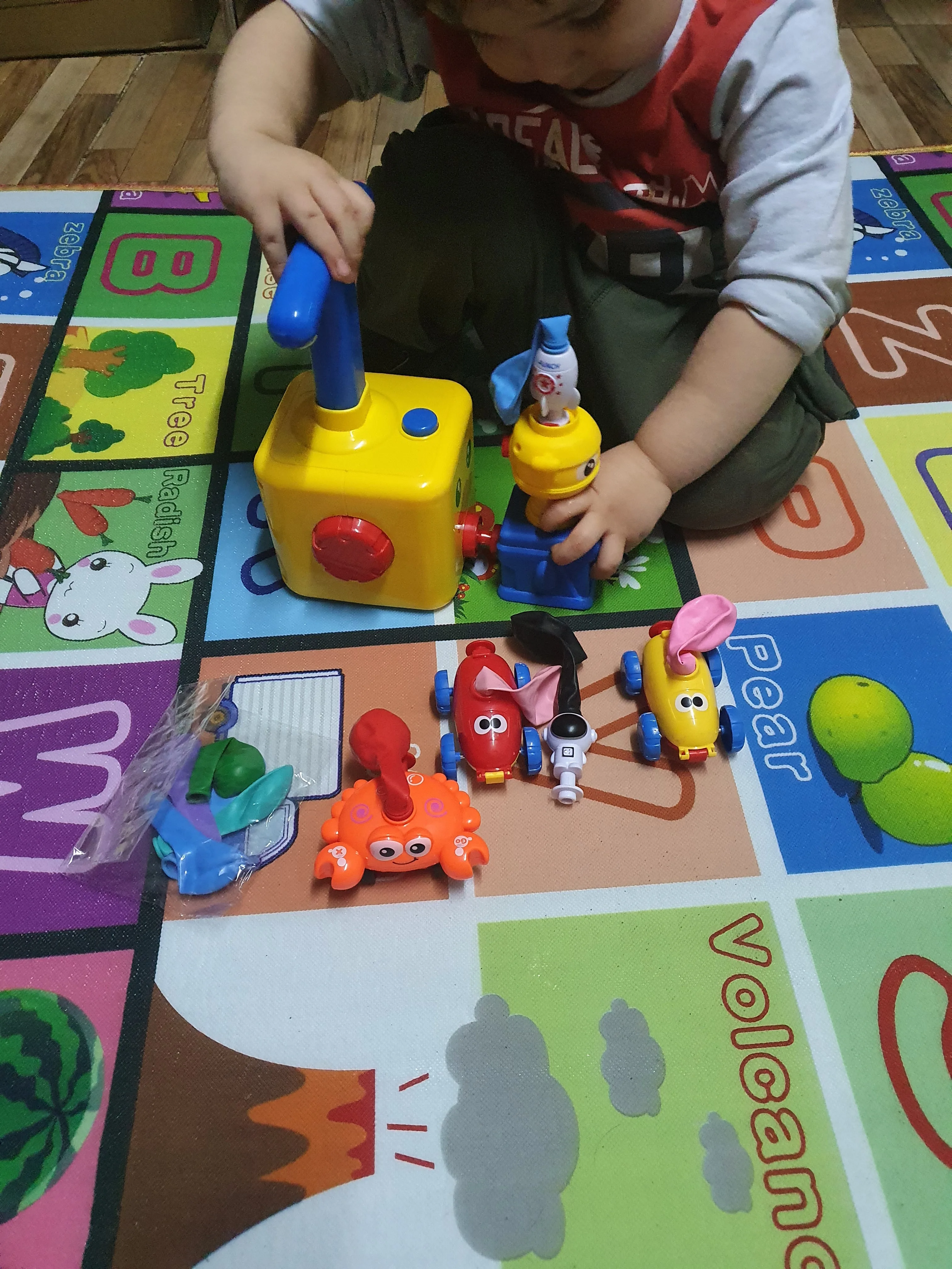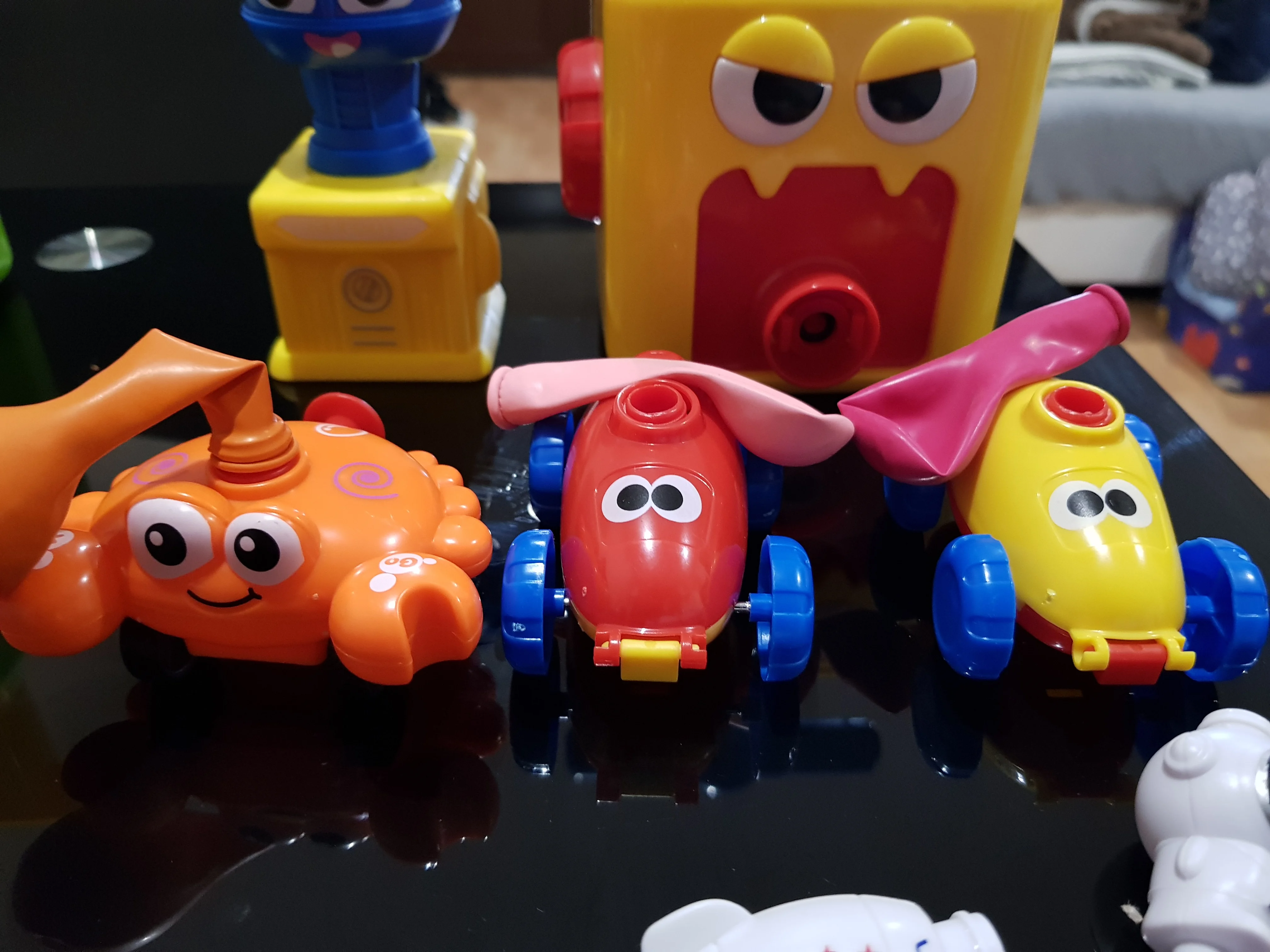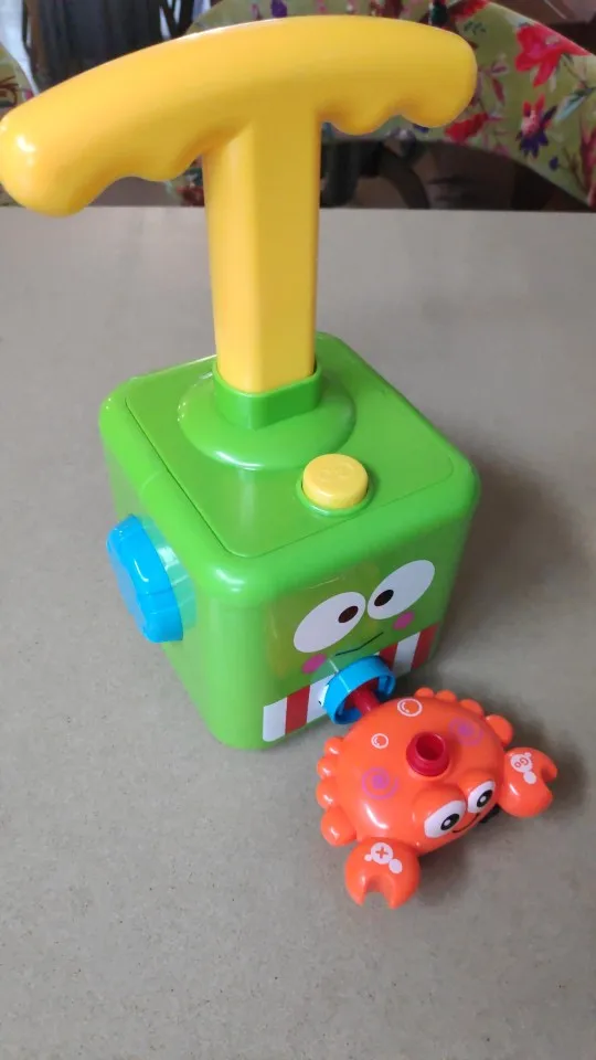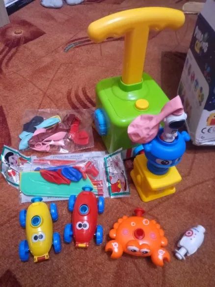 Товар соответствует описанию. Он прибыл в Испанию в течение 10 дней, хорошо упакован в картонную коробку. Быстрая доставка. Эта игрушка «прыгающая машина» состоит из 10*10*10 ручного воздушного насоса см, ракетного челнока и астронавта, также есть две машины и краб с колесами, что очень забавно. Есть также 12 воздушных шаров для использования при получении. Машины катаются лучше на поверхности ковра. Краб имеет резиновые колеса и колеса на любой поверхности. Ручной Насос прост в эксплуатации для моей дочери 30 месяцев. Самым слабым моментом игрушки является сцепление. Ребенок сможет правильно разместить его с небольшой ловкостью, но вам будет нужна помощь, если вы находитесь под 3. Пусковые кнопки в ведре и челнок легко приводятся в действие. Пластик жесткий, но может не поддерживать чрезмерное применение. Ракета И астронавт разогреваются без контроля, но не достигают высоты более 2 метров.