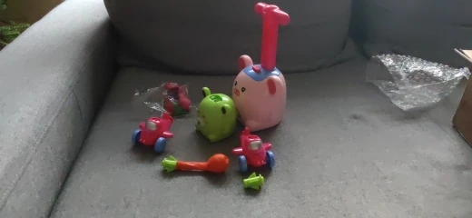 Отличная занимательная игрушка, все работает, особенно ребёнку понравились крутящиеся лопасти с пищалкой, если бы ракета или космонавт взлетали бы с таким же звуком-было бы супер). Не хватает противоскользящий накладок на самом насосе, но это не критично.