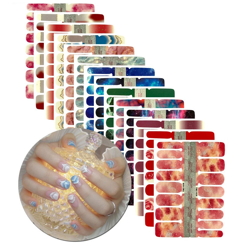 1 Лист наклейки для дизайна ногтей YMC, новые цветущие лак для ногтей, метал полосок, ярких цветов, водостойкие, полное покрытие, патчи для ногтей, маникюр