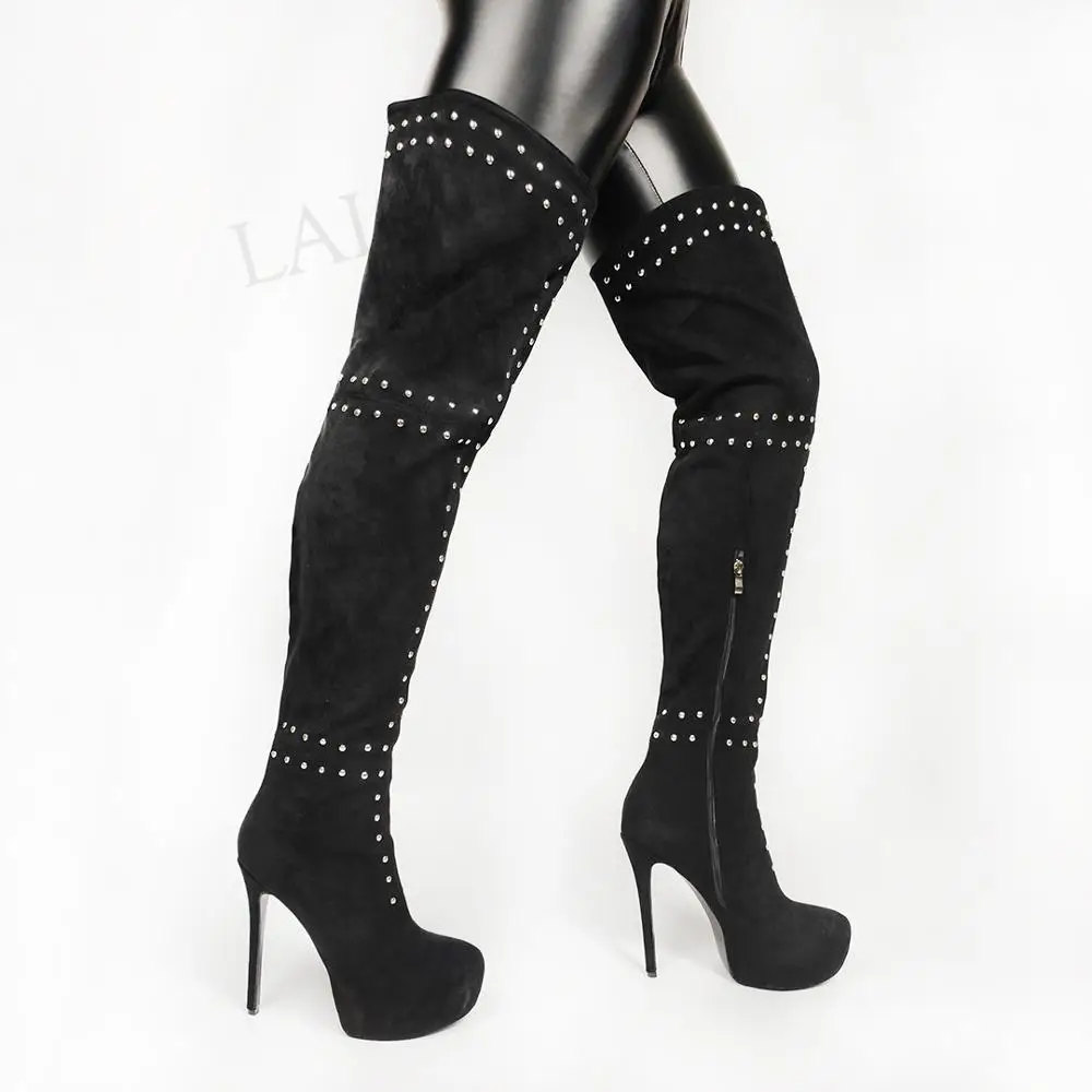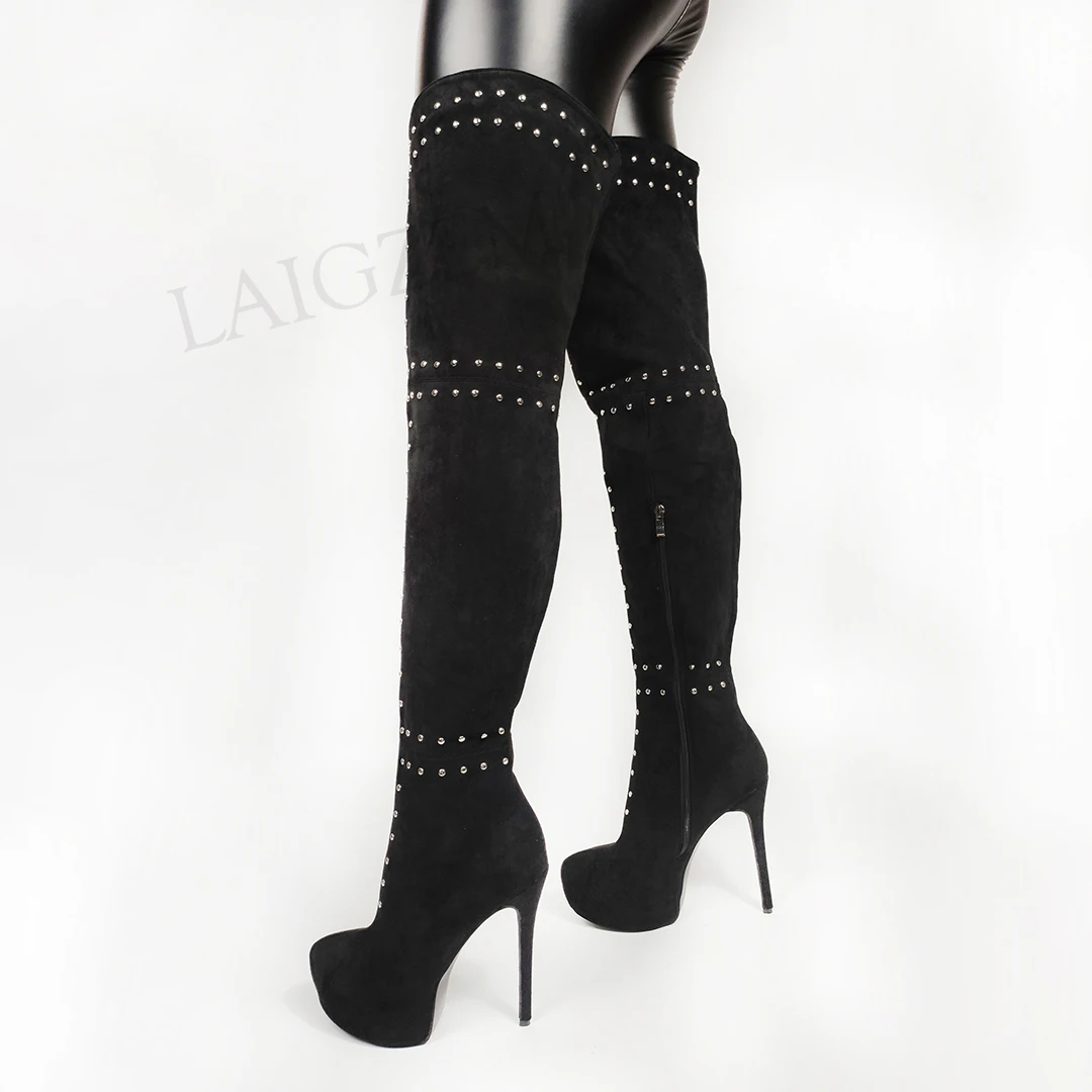 Женские сапоги на высокой платформе с шипами и молнией, женские сапоги на высоком каблуке, размер 44, 46, 47, 49, 50, 52