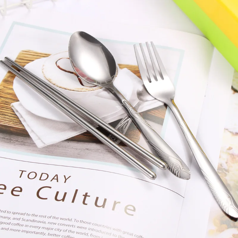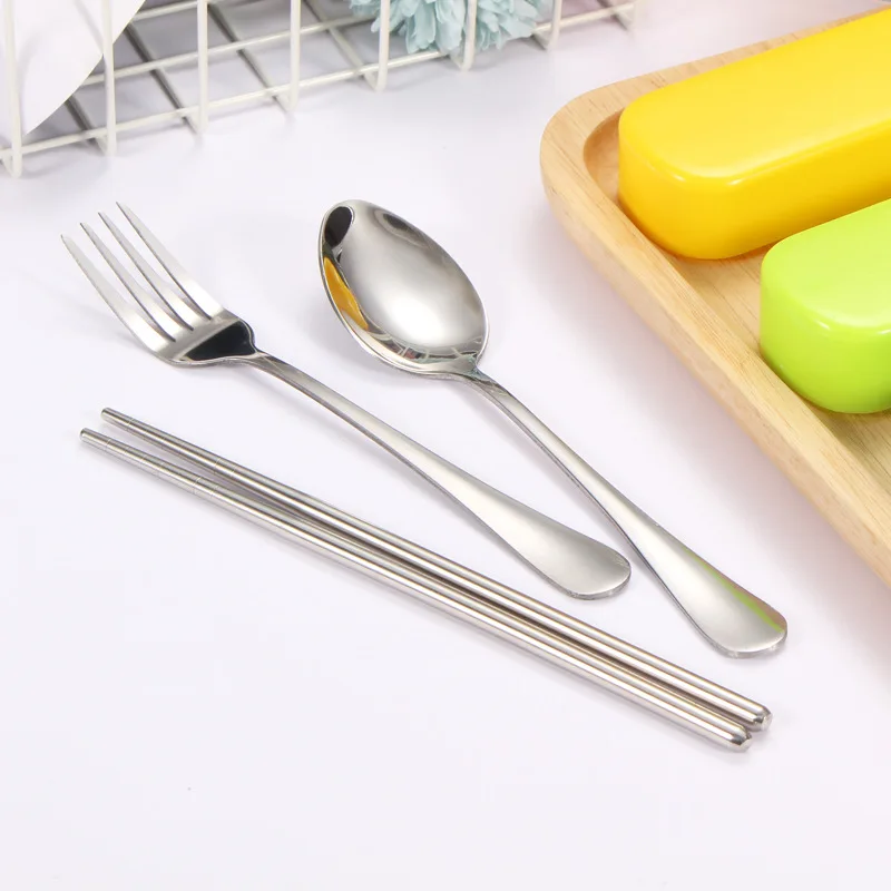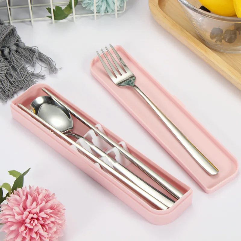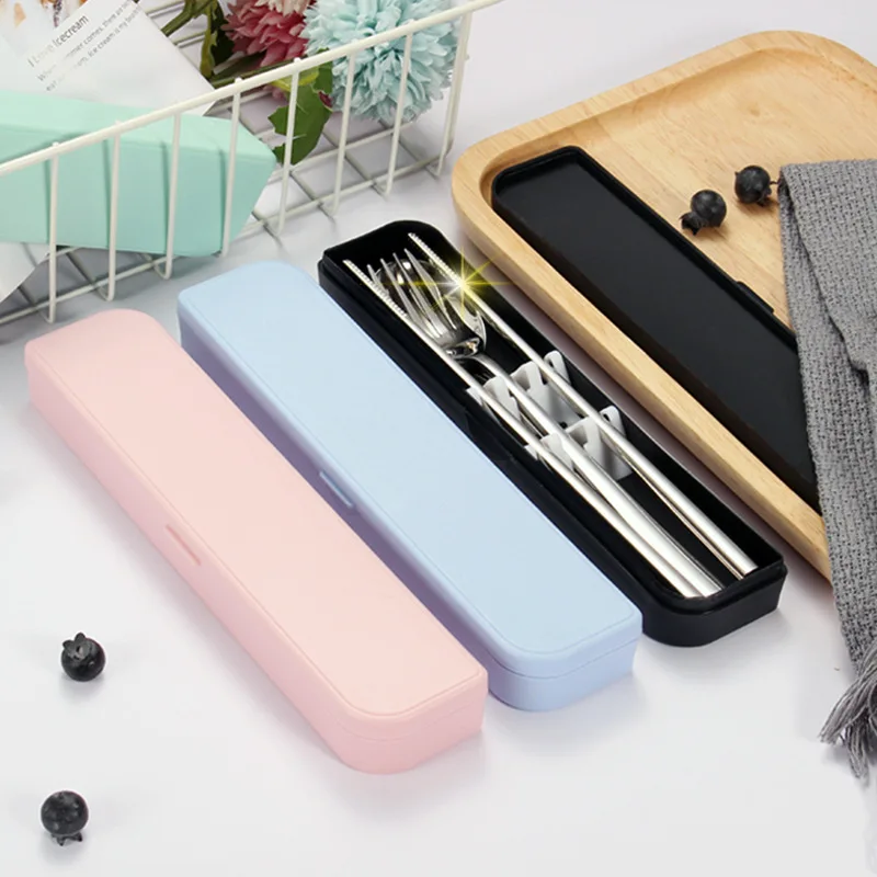 Набор многоразовых столовых приборов, ложка, вилка, палочки для еды, соломинка, переносной чехол