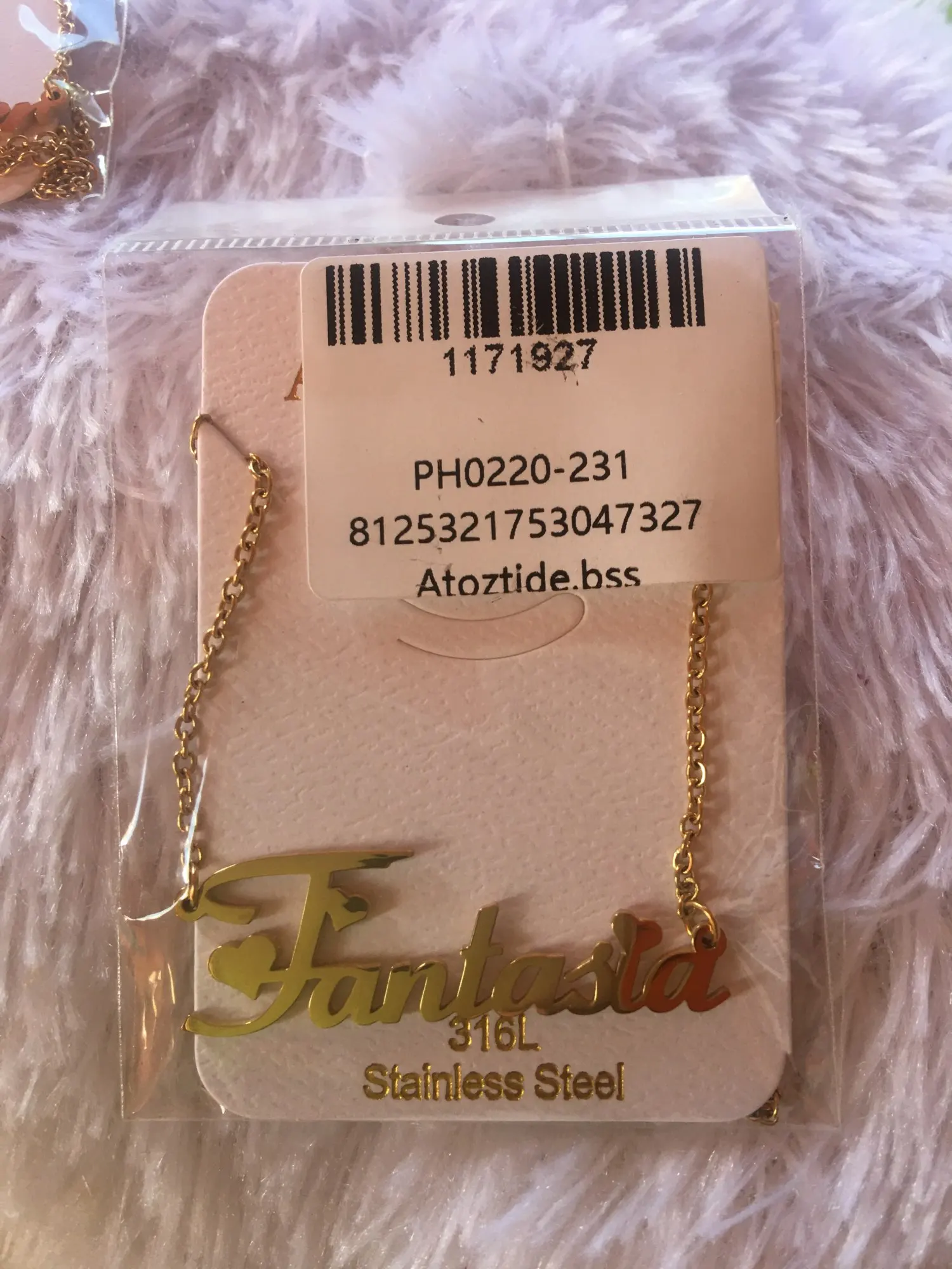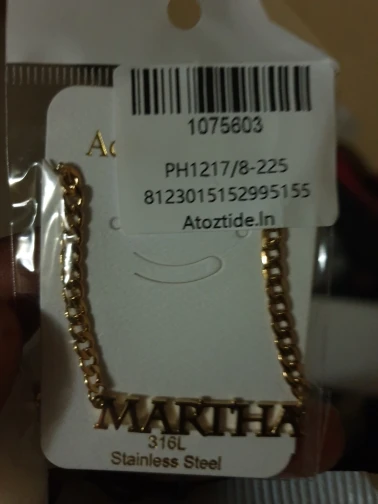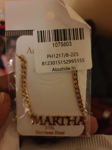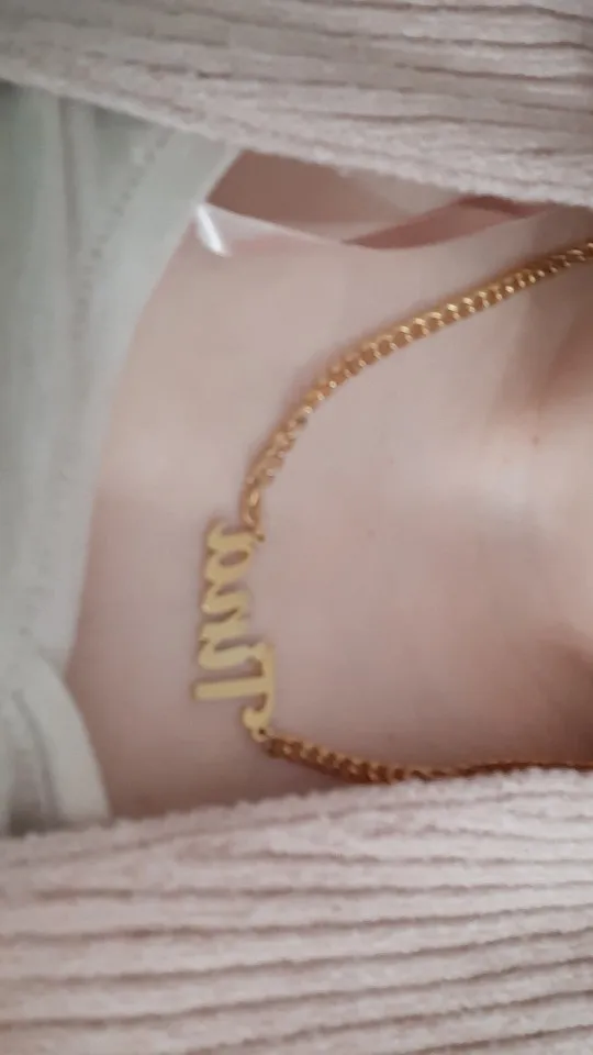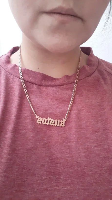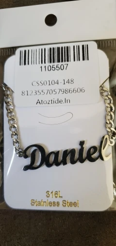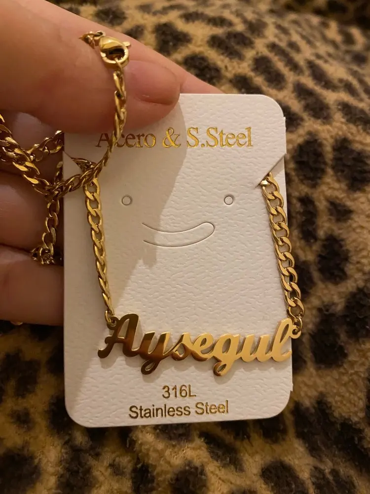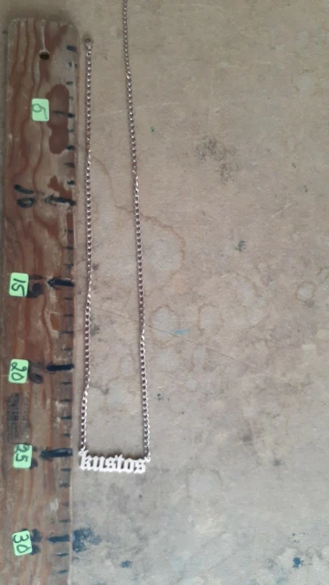 Красивое Ожерелье, мне понравилась цепочка, и я сказал. Хорошая отделка, тяжелый и блестящий материал, без царапин и отпечатков пальцев, цепь измеряет 25 см с каждой стороны кулона (имя), а также имеет 8 см дополнительной цепи, цепочка Броши хорошего качества, легко открывается и закрывается, имя без ошибок, Как я и просил (без запонок в моем случае), продавец ставит то, что вы указываете в сообщении. Я буду покупать это ожерелье снова с другим именем. Без жалоб, мне понравилось. Один месяц, чтобы быть сделано/отправлено, а другой месяц в доставке в мой дом. Я рекомендую, дружелюбный продавец.