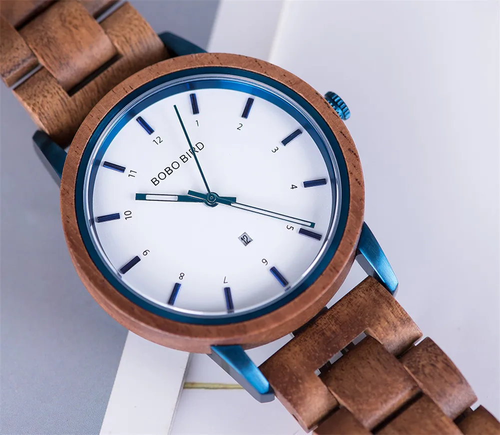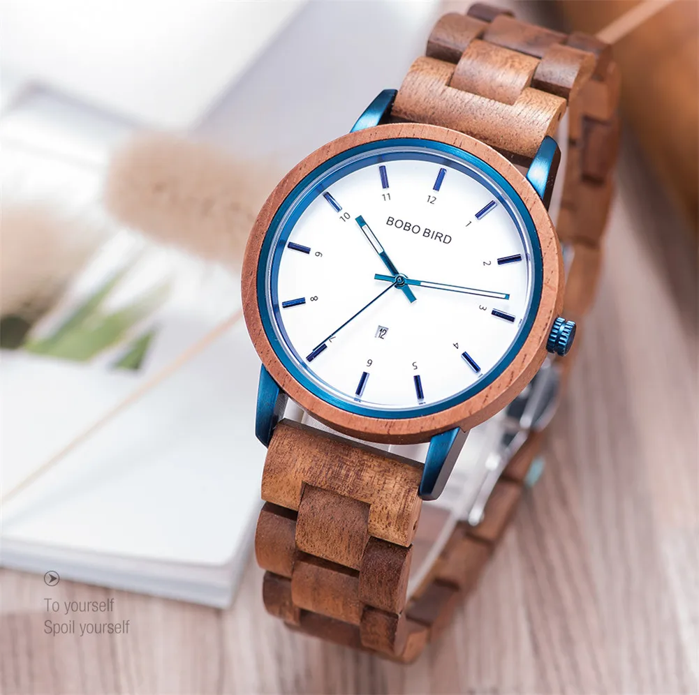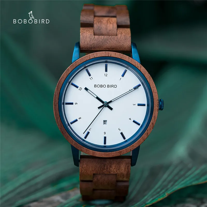 Часы наручные BOBO BIRD Мужские кварцевые с деревянными ремешками, модный подарок на Рождество в коробке
