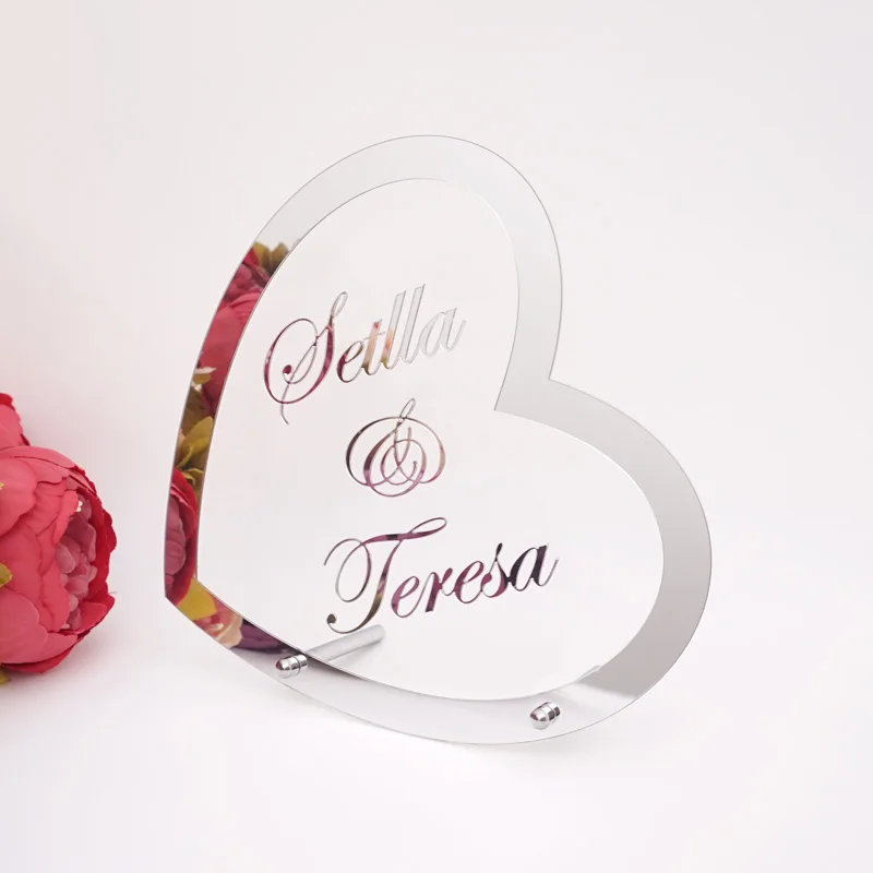 Свадебное украшение в форме сердца с именем на заказ акриловая рамка для зеркала, надпись Добро пожаловать вечерние ничный декор с ногтями, подарок для гостей
