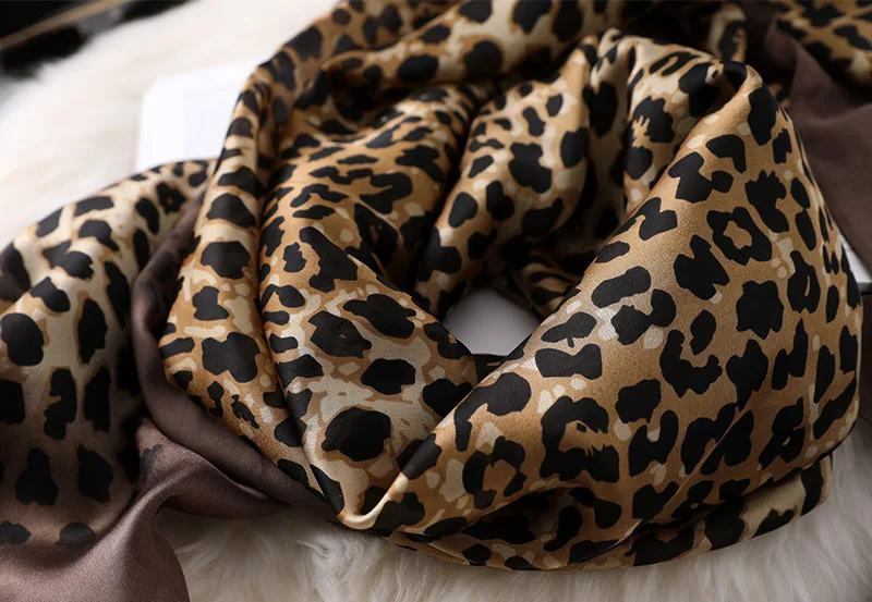 2022 Испания Мода Омбре сексуальный шелковый шарф под леопарда шаль леди печать мягкие шали обертывания зима шеи шарфы Пашмина хиджаб палантин