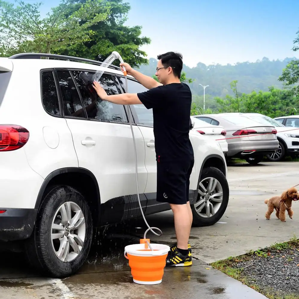 * 1. Широко используется: Аккумуляторный мобильный походный душ с аккумуляторным насосом, вы можете принимать душ в любом месте, например, уборка автомобиля, мытье собак, кемпинг, туризм, серфинг или другие мероприятия. Ваш душ всегда будет с вами.