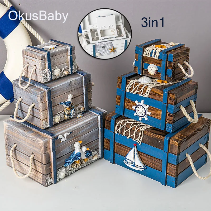 3 в 1, деревянный ящик для хранения в средиземноморском стиле